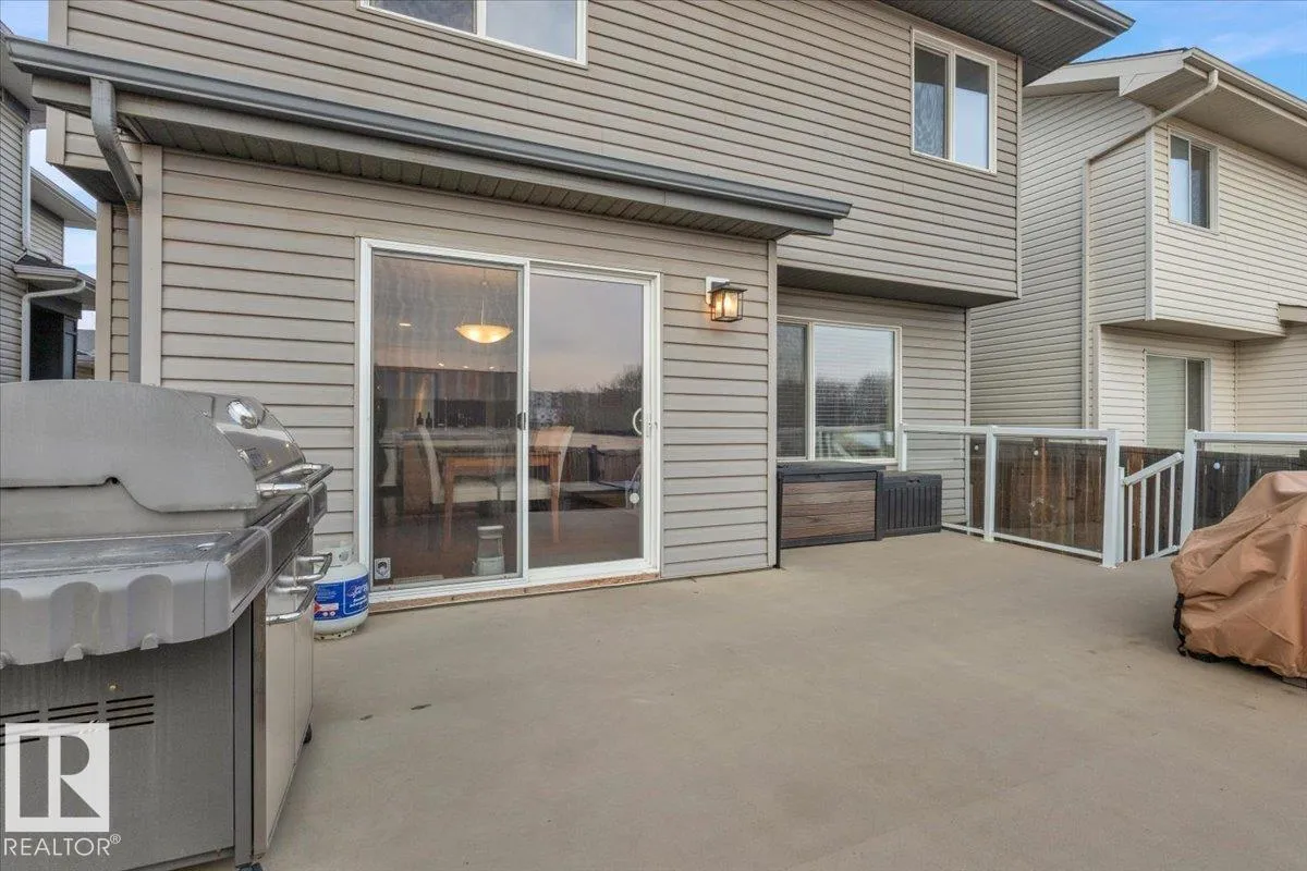 +"PublicRemarks": "Absolutely stunning home on a big PIE lot! Great open layout- gorgeous kitchen with cabinets all the way up the 9' ceilings, 8' granite island, stainless appliances including new range & walk through pantry to the garage. Currently set up for a large dining table by the cozy gas fireplace & a bright sitting area at the back of the home, but easily switched for a larger living room on the main floor & a table in the nook. The patio door leads out to an incredible yard with an elevated deck, pergola, hot tub & beautifully landscaped paving stone & lush irrigated green oasis! Upstairs are 3 good sized bedrooms, 2 full baths & a central bonus room to separate the bedrooms. The primary has a great walk-in closet & tile & glass shower with quartz counters. The basement is fully finished with a 4th bedroom, 3rd full bathroom & a good sized family room. Quiet street with excellent neighbours, close to walking trails, parks, Public & Catholic schools & Lewis Farms Rec Centre. Central A/C & HWT 2022 (id:62650)"