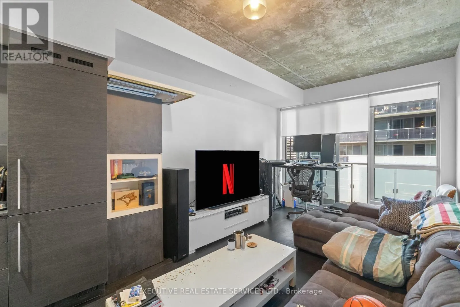 +"PublicRemarks": "Welcome to Unit 721 at 1030 King Street West - DNA3 Condos! This stylish 1 Bedroom + Den suite offers the perfect mix of modern finishes, thoughtful design, and unbeatable location. Boasting over 600 sq ft of interior living space plus a large 100 sq ft balcony, this bright and functional layout is ideal for professionals, first-time buyers, or investors alike. The open-concept living area features floor-to-ceiling windows, exposed concrete ceilings, and wide-plank flooring for that authentic downtown feel. The modern kitchen includes upgraded built-in appliances, stone countertops, and ample storage. A spacious den provides the flexibility for a home office or guest space, while the primary bedroom offers excellent light and privacy. Enjoy warm summer days or evening sunsets from your private balcony, or take advantage of DNA3s outstanding amenities including a fully equipped fitness centre, party room, rooftop terrace with BBQs, and 24-hour concierge. Situated steps from restaurants, cafes, grocery stores, transit, and parks, and just minutes to Liberty Village, Queen West, and Trinity Bellwoods. Includes a locker. Move-in ready, beautifully maintained, and located in one of Torontos most desirable buildings.Extras: (id:62650)"