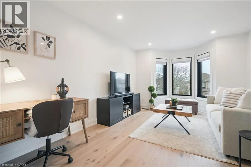 +"PublicRemarks": "Dramatic luxury awaits in Oakville's highly sought-after Preserve community. This immaculate Mattamy-built 3-bedroom, 2.5-bathroom end-unit townhome with approximately 1,541 sq. ft. delivers contemporary elegance with upscale finishes at every turn. A brilliant blend of materials creates distinctive flair and exceptional comfort-fresh designer paint colours highlight crisp white trims, wood-slat accent walls introduce warmth and texture, and beautiful hardwood floors, designer tile selections, and a solid oak staircase with iron pickets establish a refined foundation. The flexible main floor is bright and inviting, enhanced by pot lights, stylish light fixtures, large windows, and a walkout to the deck. The living room and dining room can be arranged interchangeably to suit your lifestyle. The upgraded kitchen stands out with dark shaker-style cabinetry, granite counters, an elongated mosaic tile backsplash, a functional island with a wraparound breakfast bar, pot lights, and quality stainless steel appliances. This level also includes a chic powder room and a convenient laundry room. Upstairs, three sunlit bedrooms and two full bathrooms provide comfort for the whole family. One bedroom boasts a dramatic cathedral ceiling, while the spacious primary suite offers a private 4-piece ensuite with dark cabinetry and a relaxing soaker tub/shower combination. The ground level features an inviting foyer with a double mirrored closet, stone-look tiles, and inside access to the attached single garage with epoxy flooring-adding both durability and style. Close to the Oakville Hospital, schools, Fortino's, restaurants, the Uptown Core, and highways for commuters. Credit check & references. Prefer No pets. & No smokers. (id:62650)"
