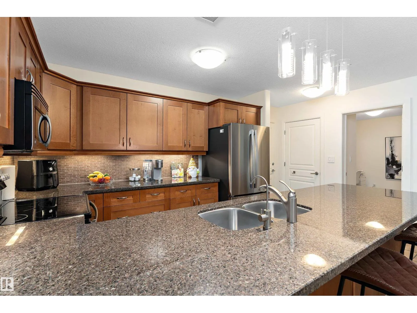 +"PublicRemarks": "Visit the Listing Brokerage (and/or listing REALTOR®) website to obtain additional information. EExperience incredible value in this gorgeous corner unit at Palisades on the Ravine. Ideally located in one of Sherwood Park’s most desirable communities, steps from Centennial Park, this bright and spacious condo offers stunning sunsets and peaceful park views. The open concept layout features large\u{A0} windows that fill the home with natural light, while the modern kitchen boasts granite countertops, a large island and stainless steel appliances. Built with concrete construction for enhanced soundproofing and durability, this air-conditioned suite includes two titled parking stalls and storage cage. The primary bedroom offers a walk in closet and 3-pc ensuite, while the second bedroom and full 4-pc bath are perfect for guests. Additional highlights include fireplace, in-suite laundry, and two balconies with a gas line for BBQ. Residents enjoy access to a gym and a common lounge with games, and a full kitchen. (id:62650)"
