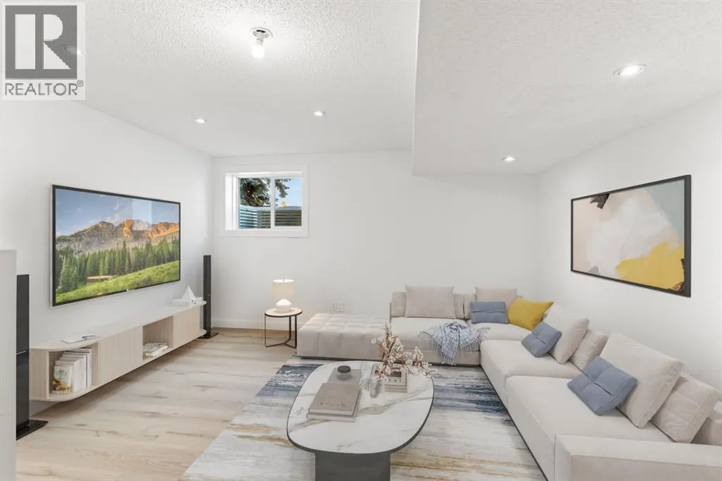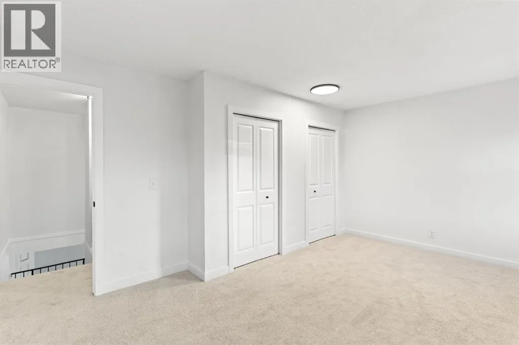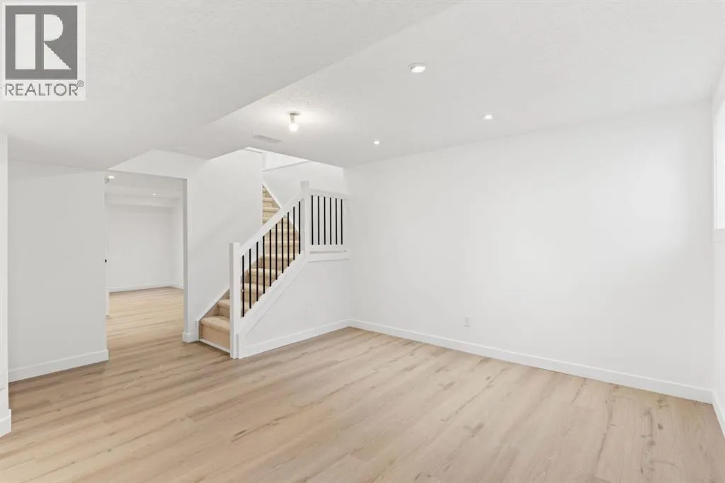 +"PublicRemarks": "Beautifully upgraded 3+1 bedroom, two-storey split home ideally located across from MacEwan Park & Playfield, with transit conveniently right in front of the house! Step into a bright, open layout featuring vaulted ceilings and a seamless flow between the living and dining areas. The modern white kitchen showcases quartz countertops, stainless steel appliances, a glass tile backsplash, double sink, and a cozy breakfast nook that opens to a west-facing deck with aluminum railing. Enjoy the inviting family room with a brick wood-burning fireplace, plus a main-floor laundry area and 2-piece bath.Upstairs offers three comfortable bedrooms, including a primary bedroom with his-and-hers closets, a tub ensuite, and a renovated 4-piece main bath. The basement (illegal) includes an additional bedroom and living space, perfect for guests or extended family.Recent upgrades include new siding and roof (2025), quartz counters throughout, LED lighting, new flooring, fresh paint, stainless steel appliances, and a newer hot water tank. The flat backyard with lane access provides space for a trailer. Just steps to Nose Hill Park, schools, and express bus routes downtown. (id:62650)"