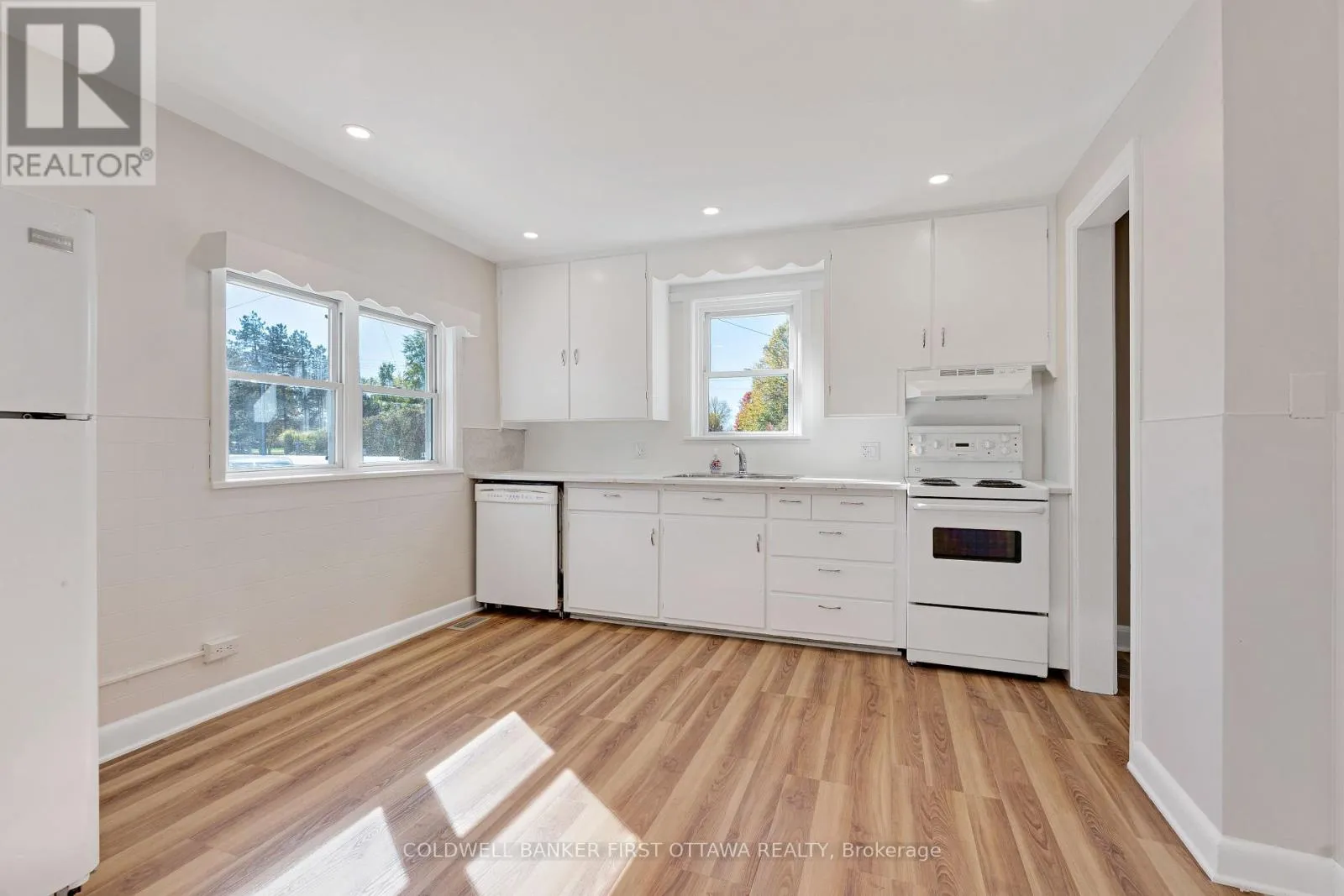 Set on a level 1.2-acre lot just beyond the edge of Perth, this thoughtfully renovated 1.5 storey home offers a practical opportunity to live and work in one place. The residence features fresh flooring, new paint, and updated bathrooms throughout. A spacious eat-in kitchen includes an oversized pantry and serves as a central hub, leading into a large living and