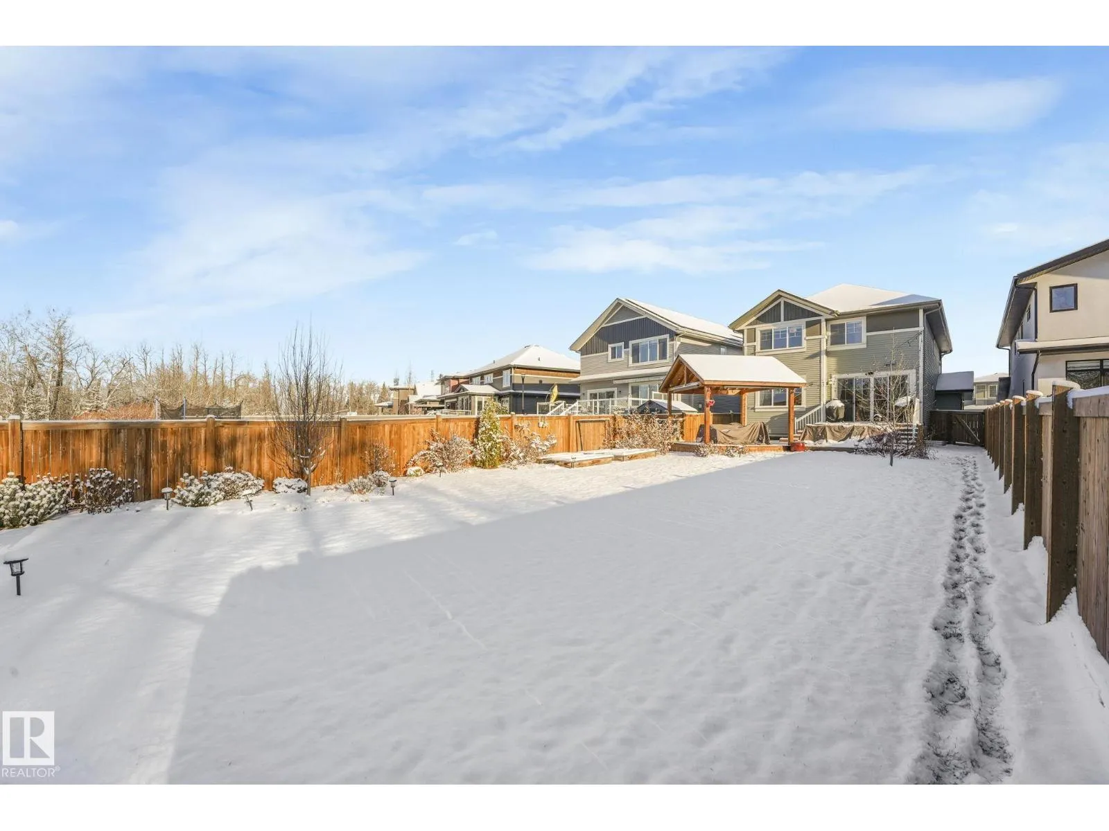 +"PublicRemarks": "Experience luxury living in this stunning 2-storey home featuring 11' sliding patio doors that create an entire wall of glass overlooking the SW-facing yard and tranquil Conservation Area. Enjoy a big deck, private gazebo, fire pit, and raised garden beds. Inside, the high-end kitchen impresses with stainless appliances including a gas cooktop, double ovens, a huge island, quartz countertops, and a pantry with freezer. The main floor offers 9' ceilings, engineered wide-plank wood floors, and a convenient office space off the kitchen. The dining area features a full wall of built-ins, while the living room is warmed by a gas fireplace. Upstairs are a bonus room, two bedrooms, and a stylish family bath. The luxurious primary suite includes a free-standing tub, triple vanity, glass shower, and walk-through access to the laundry. Basement with 9'ceilings and rough in for bath. Close to the Henday, walking paths, and shopping, this home blends modern comfort with natural beauty. (id:62783)"
