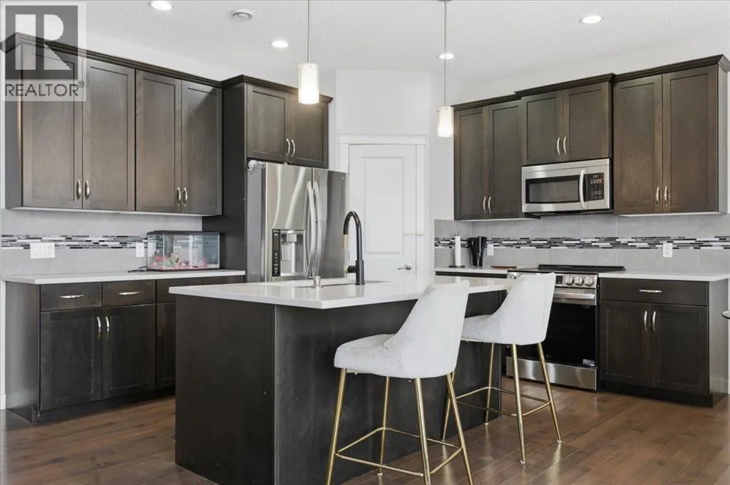 +"PublicRemarks": "Very rare floorpan. 2221.77 sqft 2 storey total of 3195 of developed home features 3 bed room up and one in the basement., 4 full bath, a large modern kitchen with white quartz counter tops, Gas fire place. The living room features high ceilings with beautiful 18 ft windows. Private den/diningroom, Close to 3 schools , 3 playground, gorgeous pond and many walkng and bike paths. New Furnce, Washer, Dryer and Fridge (id:62650)"