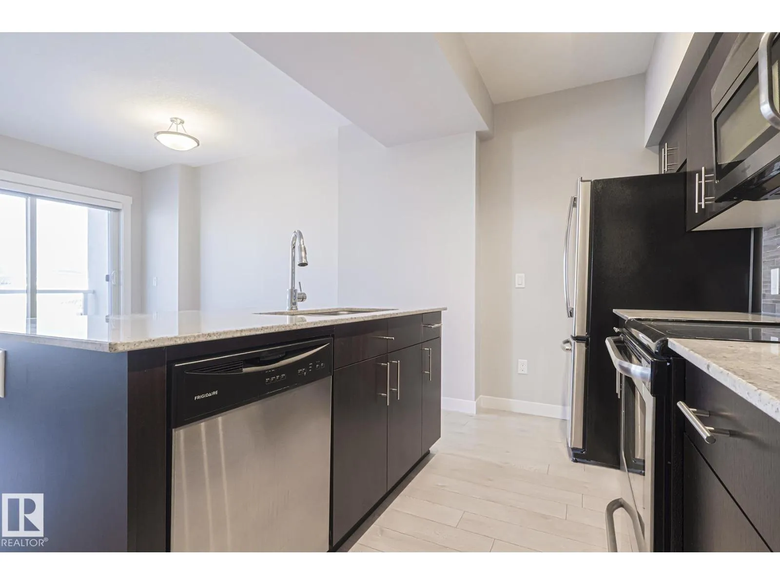 +"PublicRemarks": "Discover upscale urban living in this bright and modern unit in FOX ONE with LOW CONDO FEES. With just steps to Rogers Arena, coffee shops, restaurants, nightlife and so much more. This immaculate 1 bedroom 1 bath condo offers an open concept living space, kitchen with quartz counter tops, stainless-steel appliances, in suite laundry, gas line on the patio and heated underground parking. The balcony boasts a beautiful view of the downtown skyline and Rogers Place with plenty of space for entertaining. This unit is in brand new condition. A must see! (id:62783)"