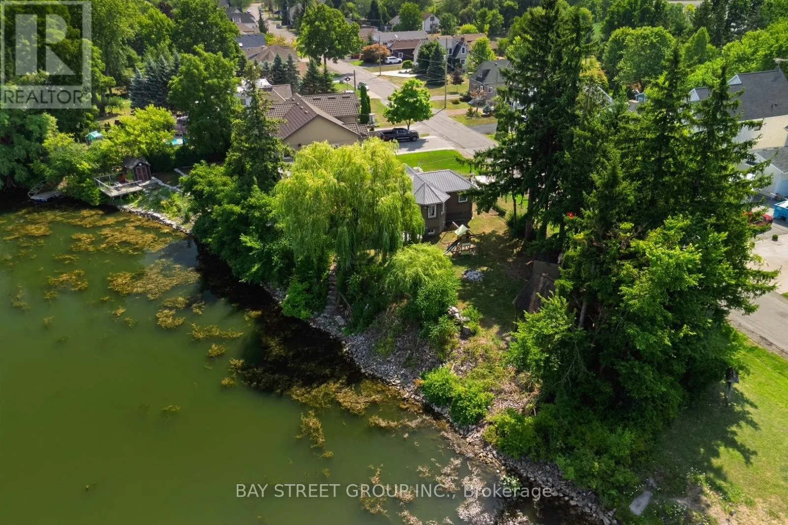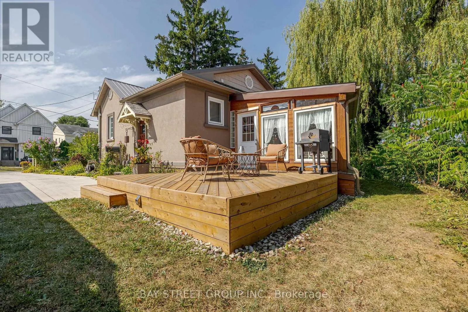 +"PublicRemarks": "Magnificent trees, 150+ ft of water views, and breathtaking sunsets on Lake Gibson - a rare private oasis with a charming cottage-like feel on peaceful, historic Beaverdams Island in the heart of the Niagara Region! Nestled on a quiet cul-de-sac and surrounded by water, this property offers exceptional privacy yet is just steps from the Pen Centre and scenic hiking trails. The generous, well-treed yard is ideal for entertaining, with a large deck, perennial gardens, stone pathways, three storage sheds, and a playset. A stone path leads to the waterfront, where you can enjoy mesmerizing views - perfect for nature lovers and retirees seeking a relaxed lifestyle. Inside, the charming 2-bedroom, 1-bath home features a sleek eat-in kitchen, bright living room with gas fireplace, and an newly updated all-season sunroom with heating. The extra-large heated garage offers a spacious workshop/man cave/she shed with a newer cedar roof. A building permit is in place to convert it into a separate two-bedroom unit with living room, laundry, and kitchen - ideal for extended family or guests. More updates include a metal roof, most windows, exterior plaster, new concrete driveway (2022), gas stove (2022), and deck (2024). An oasis that feels like Muskoka, with quick access to Niagara's vineyards, shopping, and highways. Truly a must-see! (id:62650)"