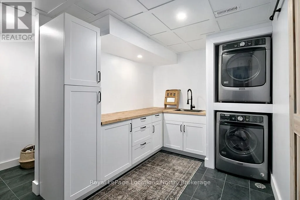 +"PublicRemarks": "9 Shirley Court - An exceptional home tucked away on a quiet, family-friendly court in the heart of Thornbury. From this coveted location, you can walk to BVCS, the library, community centre, downtown, & the shores of Georgian Bay. Exquisitely transformed with a comprehensive addition/renovation in 2021, this property now offers a truly unique living experience. The pie-shaped, south-facing backyard is a standout feature, with mature trees that create a natural sense of privacy. Inside, no detail was overlooked. Thoughtful modern design fills the home, beginning with the striking staircase in warm natural tones contrasted with sleek black accents-a theme carried throughout. The main floor features engineered hardwood & an open-concept layout anchored by an oversized slider that extends your living space outdoors. The kitchen, is the heart of the home with an impressive island perfect for family gatherings, opening to both the formal dining room & the cozy living room. Two bright & spacious bedrooms on the main level share a stylishly renovated 4-piece bathroom. The newly created primary suite occupies the upper level, offering a private retreat with cathedral ceilings, a beautiful ensuite, & a generous walk-in closet. The lower level provides even more functional space, including a cozy second living room with a wet bar, a workout area, and a fourth bedroom with its own private bathroom-ideal for teenagers, guests, or a potential in-law suite. A well-designed mudroom/laundry room complete this level. Car enthusiasts & hobbyists will appreciate the original two-car garage with interior access, complemented by a newly added third bay that provides direct access to both the backyard and the lower level. Recent upgrades include a new furnace, AC, windows, roof, siding, and more. The property is fully landscaped and features a brand-new asphalt driveway (2025). This home truly has it all-modern design, thoughtful functionality, and an unbeatable Thornbury location. (id:62650)"