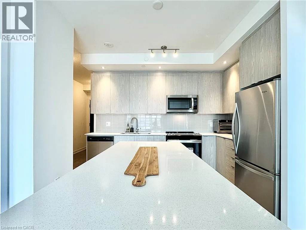 +"PublicRemarks": "$500 Rent Credit Applied on the Second Month - Jan 1, 2026 OccupancyDiscover this newly built 1-bedroom + den condominium in the heart of Kitchener, offering breathtaking 14th-floor views and available for immediate possession. This modern unit features an open-concept layout with floor-to-ceiling windows, one bathroom, underground parking, in-suite laundry, custom blinds, granite countertops, wide-plank flooring, subway tile backsplash, a shower/tub combo, stainless steel appliances, and a kitchen island with outlets. Exceptional building amenities include an LRT stop at the front entrance, a rooftop running track, an extreme fitness area with a spin room, a party room with a sunbathing terrace, fire pit and BBQ area, ground-level courtyard, 5th-floor dining terrace, and 24-hour concierge service. Located steps from top restaurants, bars, shopping, and entertainment, this condo delivers the perfect blend of luxury and convenience-experience the best of modern living with immediate occupancy. (id:62650)"