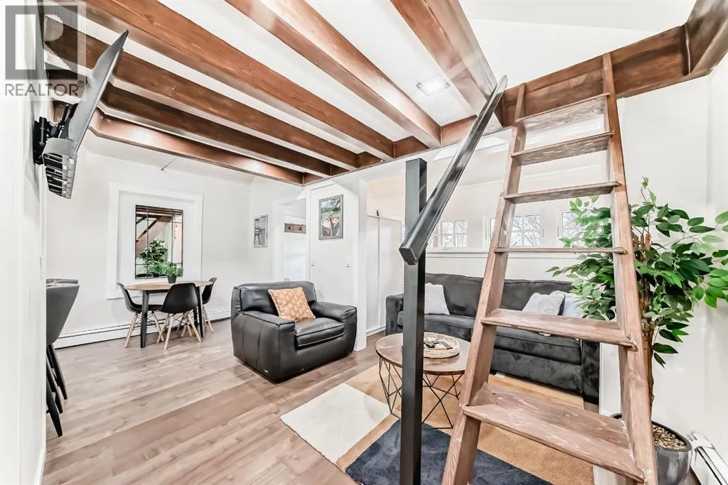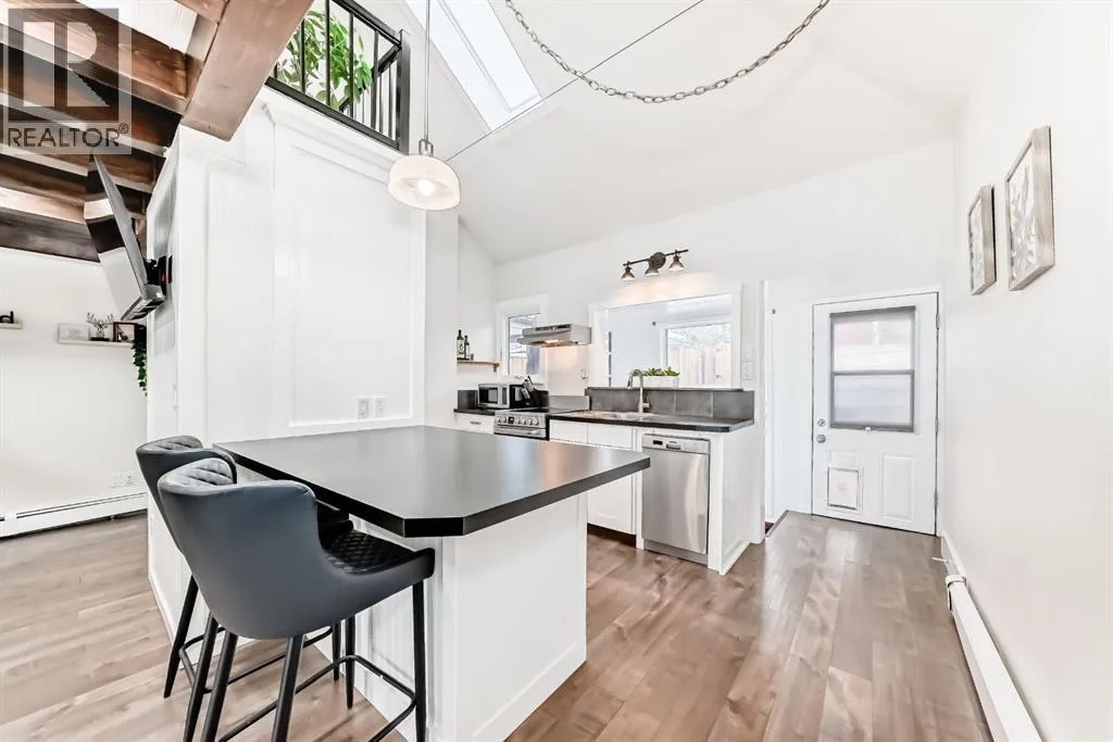 +"PublicRemarks": "Looking for an investment opportunity this is it! Completely set up for a cozy Airbnb or has incredible potential for a new infill in the sought after community of Parkhill. This bungalow has vaulted ceilings, skylights , and an open floor plan. Many modern touches throughout including updated kitchen with new electric stove, dishwasher and refrigerator. Second Floor has loft style bedroom that fits Queen size mattress. Recessed lighting in living room and loft area. New fence ,deck and Pergola installed in summer of 2024. Single Garage has been recently renovated as a studio/ bonus room for game nights or movie night. Just minutes away from downtown and Calgary Stampede. Or take a short walk to Stanley Park or Elbow River. (id:62650)"