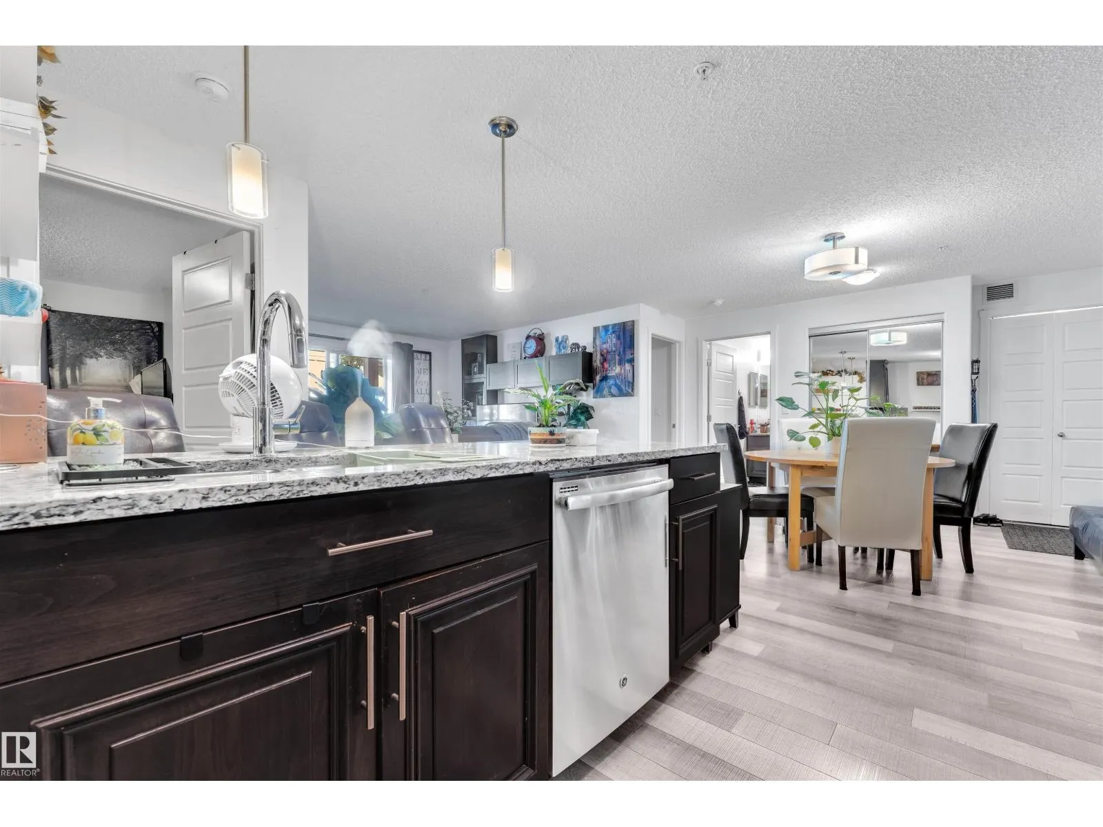 +"PublicRemarks": "This SPACIOUS open layout condo is located in the sought after neighbourhood of Schonsee. Featuring 2 bedrooms, 2 bathrooms, a grand living space with LUXURY VINYL PLANK flooring and a kitchen with ample cabinetry plus GRANITE countertops. A patio is located off the living room where you can catch sun rays on a SUNNY day. An UNDERGROUND PARKING STALL is included. Looks like NEW, very BRIGHT, and ready to move into! (id:62650)"
