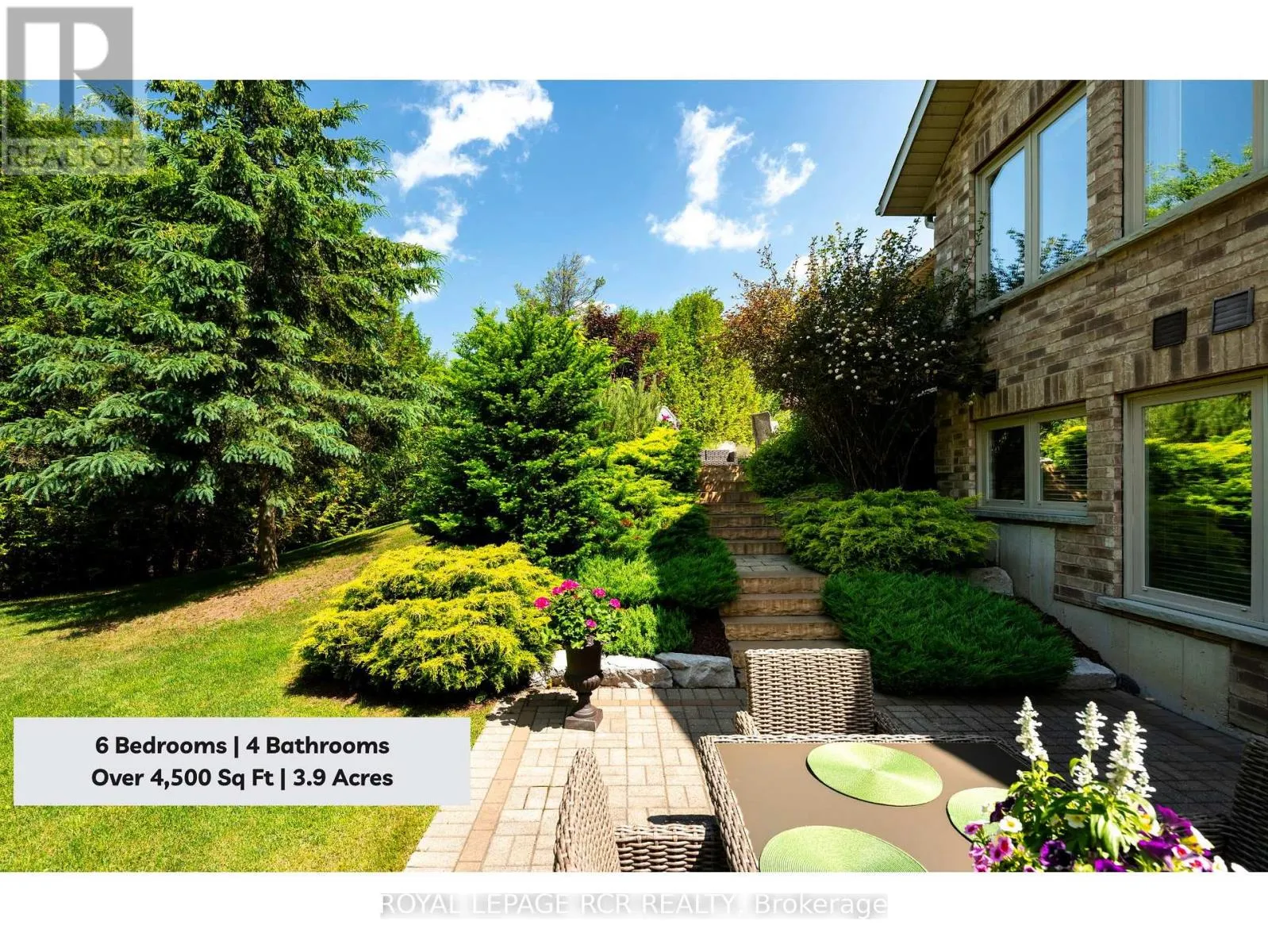If you’ve been waiting for the right country property-this is where space, flexibility, and real value finally align on 3.9 private acres .WELCOME HOME to this custom-built, 3+3 Bedroom – 2+2 Bath all-brick executive bungalow offering over 4,500 sq ft of finished living space, thoughtfully designed for refined multi-generational living. Expansive windows frame views of the surrounding landscape, while cathedral