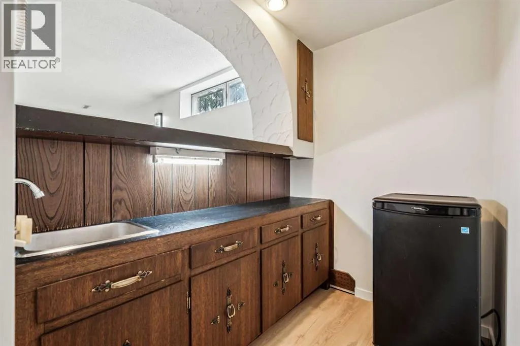 +"PublicRemarks": "Charming Spanish-Style Bungalow – Modern Renovations & Timeless Character Your busy day will melt away the moment you step into the peaceful front courtyard of this beautifully updated Spanish-style bungalow. From the moment you enter, a sense of calm and warmth surrounds you. The sunken living room is a true showpiece, featuring a large skylight, sun-filled windows, and a cozy wood-burning fireplace—perfect for quiet evenings or entertaining guests. The adjacent dining area flows seamlessly into a fully renovated kitchen, where you’ll enjoy a stunning view of the rear courtyard, complete with classic brick and mortar raised planters. Recent renovations just completed a few months ago give the home a modern and stylish edge, including: New flooring on both levels? Fresh natural paint throughout? Refinished kitchen with new countertops? Updated light fixtures? New downstairs bath/shower? The lower level is a fun and vibrant space with Spanish-themed décor and new vinyl plank flooring. Perfect for entertaining, it features: A wet bar? Entertainment and games area (great for pool or ping pong!)? A sauna room & bath? A versatile space ideal for a man cave or a creative studio? Centrally located close to schools, parks, shopping, and the LRT, this unique and well-cared-for home offers character, comfort, and convenience in one perfect package. Don’t miss your chance to see this truly special property! (id:62650)"