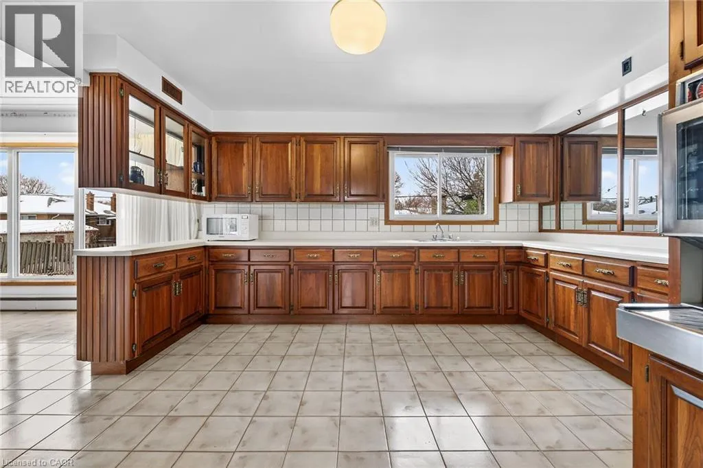 +"PublicRemarks": "Prime Location! Steps to Bruce Park & Mountain Brow! Bright & Spacious, Custom Built, Brick 4 Level Sidesplit. Oversized 2 Car Garage with Inside Entry. Impressive Foyer with Cathedral Ceiling. Striking Mahogany Accent Walls. Main Level Features an Inviting Eat in Kitchen with Loads of Cabinets, Expansive Living & Dining Room with Large Light Filled Windows to Highlight the Home’s Unique Design. Upper Level Offers 3 Generous Bedrooms with Oversized Closets, Hardwood Floors & Spacious 4 Piece Ensuite Privilege from Primary Bedroom with Separate Shower & Whirlpool Tub. Family Room with Wood Burning Fireplace, Convenient 2 Piece Bath & Four Window Panelled Double Door Walk Out Leading to Fully Fenced in Yard with Concrete Patio & Walkway. Fully Finished Lower Level Boasts Large Recreation Room with Electric Fireplace, Wet Bar, 2nd Kitchen, Vinyl Flooring Installed 2022, Updated 3 Piece Bathroom with Double Glass Door Walk in Shower. Ideal for In-Law Potential or Multi-Generational Families. State-of-the-Art 95% Efficient Boiler Installed 2023. Eavestroughs Replaced 2025. Central Air. Central Vacuum. Owned Hot Water Tank. Double Concrete Driveway, Parking for 4 Cars. Minutes to Juravinski Hospital, Shopping, Schools, Parks, Transit & Highway Access to the Linc! Square Footage & Room Sizes Approximate. (id:62650)"