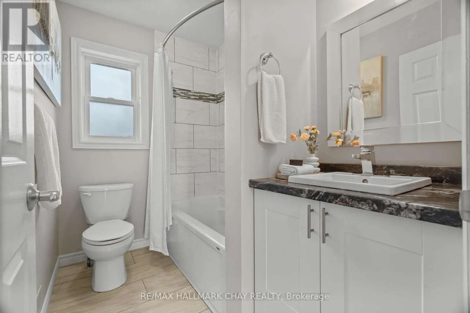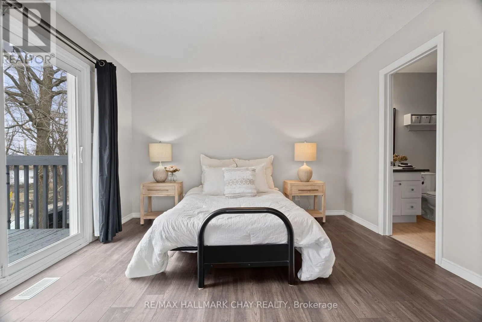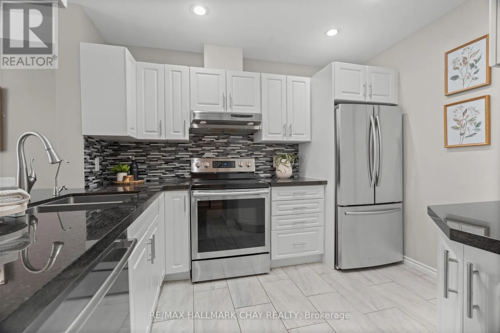 +"PublicRemarks": "Welcome to this beautifully upgraded end-unit waterfront townhouse condo-a perfect retreat for professionals, young couples, downsizers, or those seeking a peaceful getaway. With views of Lake Simcoe, over $100,000 in thoughtful renovations, and a low-maintenance lifestyle, this move-in-ready home is as serene as it is sophisticated.Step inside to a spacious foyer with custom closet organizers, setting the tone for the clean and well-designed layout throughout. The chef-inspired kitchen was fully remodeled in 2017 and features granite countertops, sleek ceramic flooring, stainless steel appliances, and a functional breakfast bar with bonus storageideal for both everyday meals and entertaining.The open-concept living and dining space is equally impressive, with newer vinyl flooring, a cozy wood-burning fireplace, and sliding doors that lead to your private deck. Out back, enjoy peaceful mornings or stunning sunset views under your electric awning, surrounded by raised flower beds and a secure gated enclosure for added privacy.Upstairs, both bedrooms have been enhanced with new laminate flooring, and the renovated main bathroom brings spa-like tranquility to daily routines. The primary suite offers an electric fireplace, in-suite laundry, a fully renovated ensuite bath, and a private balcony with western lake views-imagine waking up to the water every morning.The fully finished lower level provides even more space to unwind, with a large rec room finished with hardwood floors, a third full 3-piece bathroom, and extensive built-in cabinetry for smart storage solutions. The attached garage includes a generous mezzanine loft, perfect for seasonal or hobby storage.Set in an exclusive 9-unit waterfront complex, this home is directly across from Kitchener Park25 acres of green space, tennis courts, a dog park, and scenic walking trails. You'll also love being close to marinas, shopping, downtown Orillia, and Casino Rama. (id:62650)"