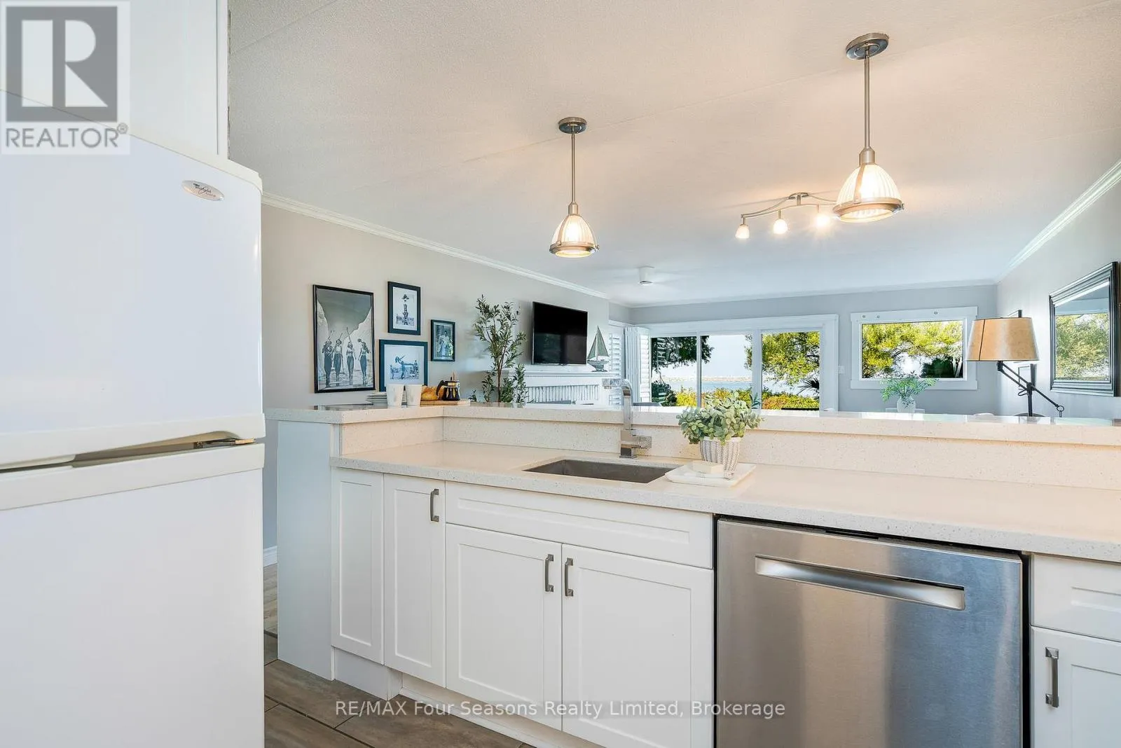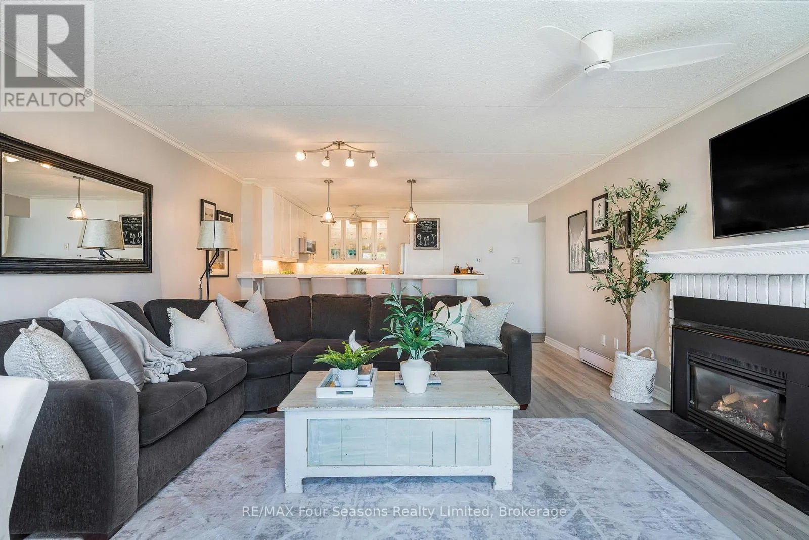 +"PublicRemarks": "Imagine waking up to the peaceful hush of winter-snow gently falling over Georgian Bay and the soft glow of sunrise painting the sky right outside your bedroom window. This rarely available 3-bedroom, 2-bathroom ground-level waterfront condo offers an intimate, year-round connection to the bay, with spectacular views from every room and direct access to the outdoors. Beautifully upgraded throughout, the condo features a modern kitchen with quartz countertops and high-end appliances, a bright open-concept living and dining area, and a cozy gas fireplace that makes winter mornings and evenings especially inviting. Two walkouts lead to an expansive patio overlooking the bay-perfect for bundling up with a hot coffee as you take in the serene winter landscape, and for dreaming about the warm summer days to come. Whether dusted in fresh snow or sparkling under a summer sun, the scenery here is breathtaking. Winter sunrises and sunsets feel magical, and as the seasons shift, you'll be ready to enjoy the private beach, kayak storage, and outdoor living that summer brings. Life at this condo is designed for comfort, convenience, and four-season enjoyment. Recently completed exterior improvements (all assessments fully paid) offer peace of mind, and Bell Fibre with unlimited internet-included in your condo fees-keeps you connected if you work from home. Step outside to enjoy the natural beauty of Georgian Bay, or take a short drive into Collingwood for boutique shops and great restaurants. With world-class skiing just minutes away in winter and exceptional golfing, hiking, and waterfront activities in summer, this is a true four-season retreat. Whether you're seeking a full-time residence, a weekend escape, or both, this waterfront condo offers a rare opportunity to embrace nature, comfort, and a lifestyle that feels like a getaway in every season. (id:62650)"