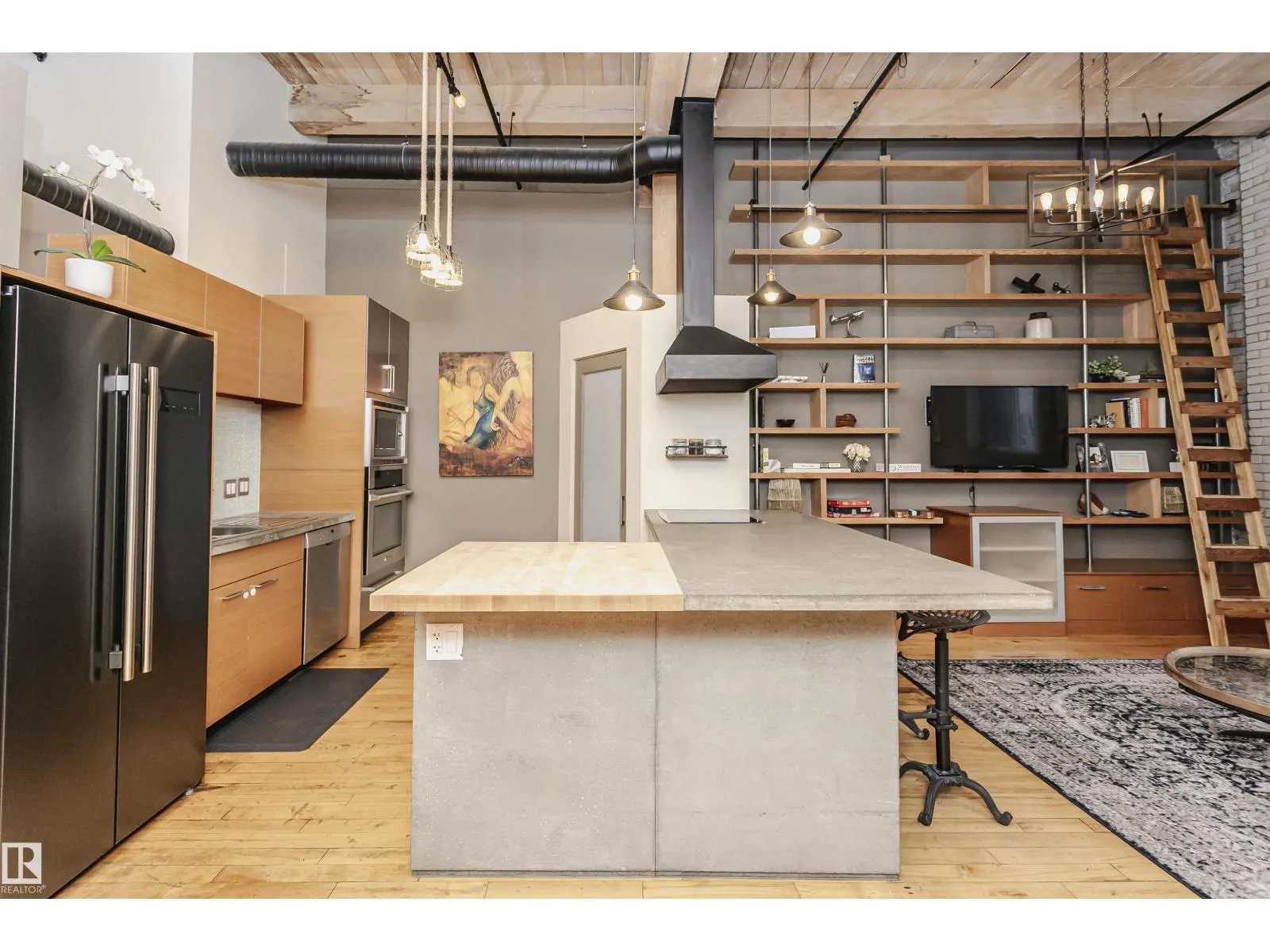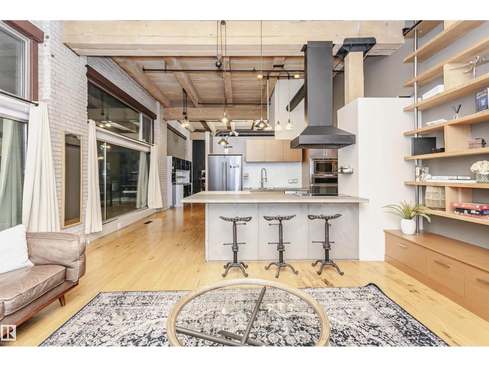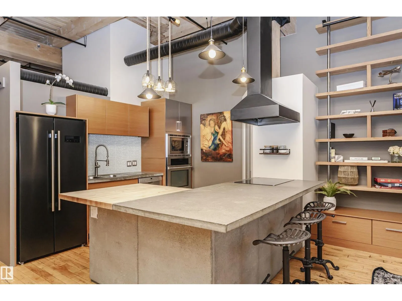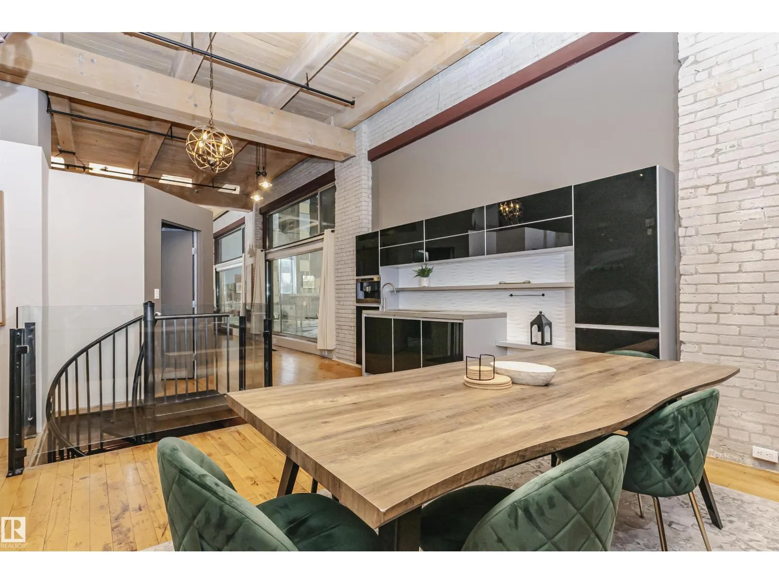 +"PublicRemarks": "HERITAGE MEETS MODERN IN THE ICONIC JOHN DEERE SEVENTH STREET LOFTS! Discover a rare blend of Edmonton history and contemporary design in this stunning loft, set within the heritage side of the historic John Deere Building—one of Downtown’s most recognizable architectural conversions. If you’re craving something truly unique, this urban sanctuary delivers. Spanning 1,776 sq. ft. over two dramatically designed levels, this loft embraces its industrial roots with exposed brick, original concrete elements, 13-foot ceilings, and beautiful hardwood floors. The spacious open layout features 2 bedrooms, 2 full bathrooms, and in-suite laundry, all wrapped in authentic character you won’t find in newer builds. The kitchen blends style with function, showcasing concrete countertops, modern cabinetry, and a layout perfect for entertaining. Enjoy the convenience and comfort of heated, secure underground parking—a must in downtown living. Located steps from Rogers Place, Ice District, and Farmers Market. WELCOME HOME. (id:62783)"