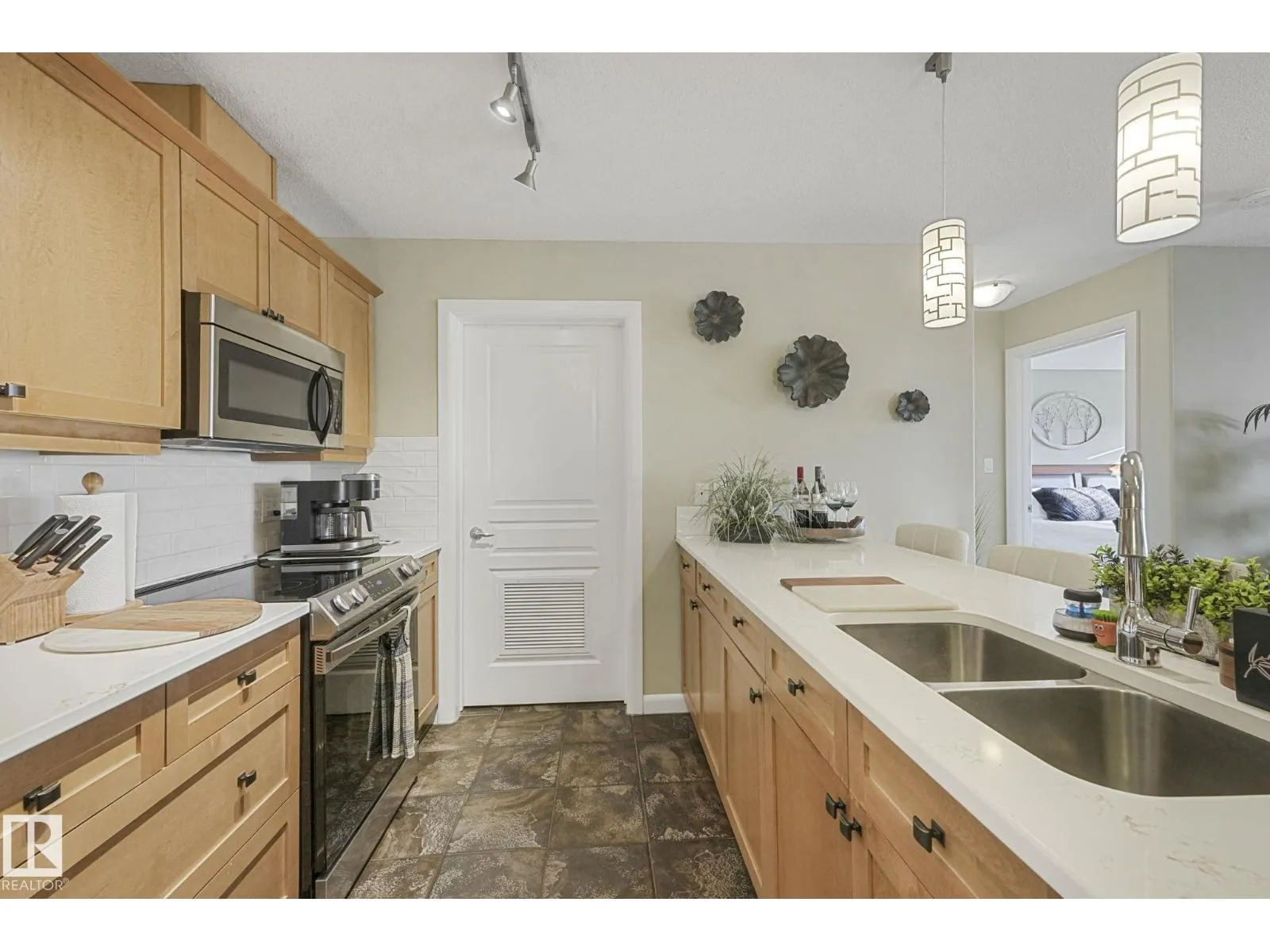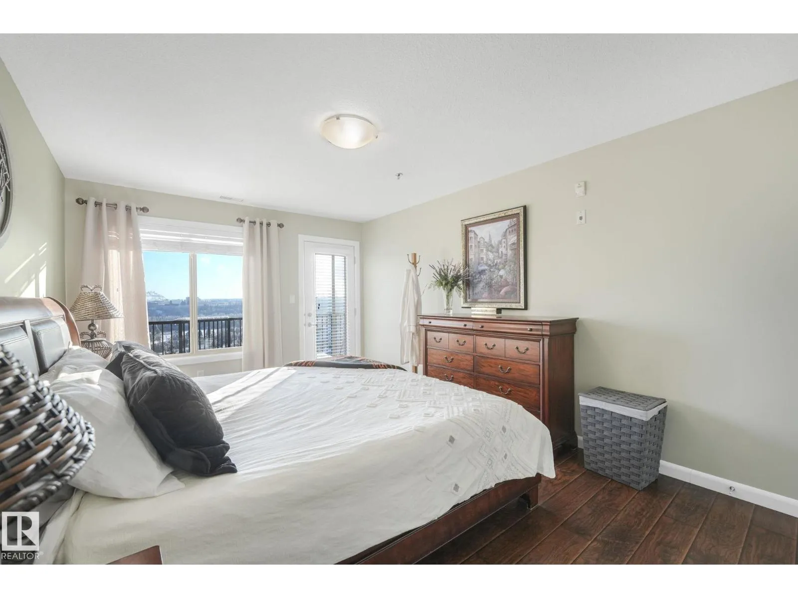 +"PublicRemarks": "Executive top-floor penthouse condo with 1200 plus sq. ft. of bright, open living space with spectacular river valley views from all rooms. This 2-bed, 2 full bath unit delivers outstanding river valley views from a large deck with a natural gas hookup. The layout feels wide and inviting with an open kitchen, dining and living area. Big windows fill the space with natural light. Both bedrooms are oversized, and the primary suite feels especially roomy. You get in-suite laundry, stainless steel appliances, air conditioning and a separate storage locker. The heated underground parkade includes a titled stall locker room and a car wash. The complex is 18 plus and offers a social room with a pool table, plus an exercise room. The location sits right on the ravine, close to shopping, schools, transit and easy access to walking paths. A standout unit in a quiet, well-kept building. Upgraded quartz countertops throughout. Spectacular place to live! (id:62650)"