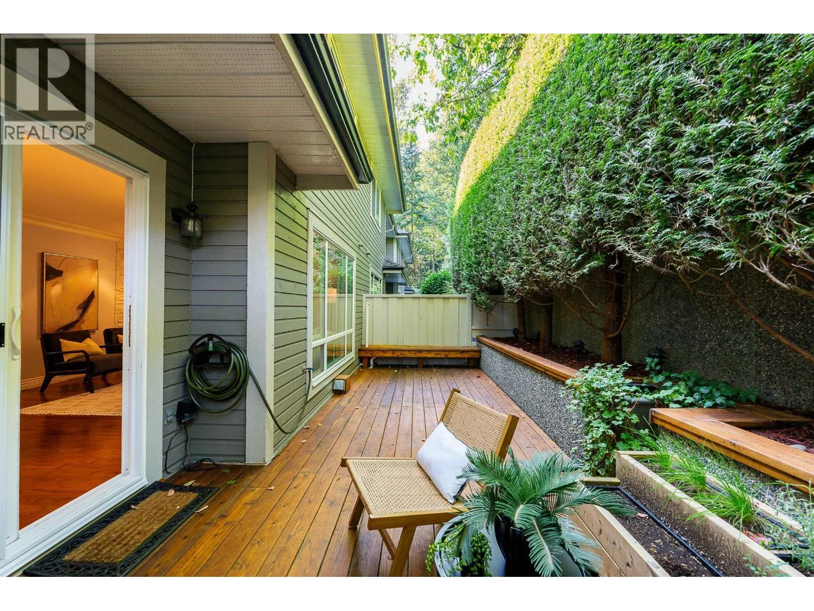 +"PublicRemarks": "Beautiful END-unit townhome with AIR CONDITIONING! This 2,471 square ft home offers a spacious, family-friendly layout in a private setting, with 3 beds + 3 renovated baths. The main features a bright kitchen w/granite counters, S/S appliances, gas cooktop and new fridge, seamlessly connected to the family room and eating area w/access to a sunny, South-facing balcony. Formal living and dining area w/gas FP and updated surround opens to a serene patio spanning the width of the home. Upstairs are 3 generous bedrooms, including a primary with walk-in closet + 4-piece ensuite. The lower level offers a large rec room with window, den, ample storage, and double car garage. New windows + balcony, and rough-in for 4th bath. Located in a sought-after catchment, including Heritage Woods Secondary. (id:62650)"