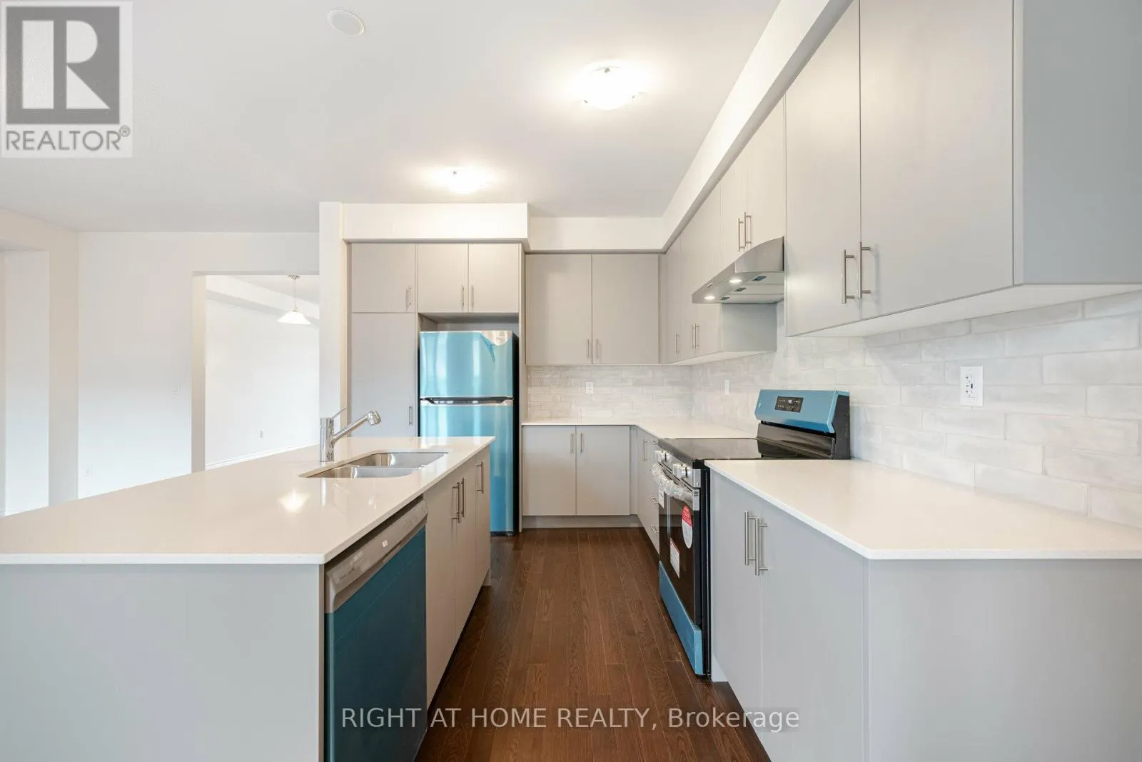 +"PublicRemarks": "Welcome to this Stunning freehold Townhouse in a quiet and friendly neighbourhood. This 2 Years New 4 BR and 3WR 2 storey Town house is located in a popular new community. The open concept Living and Dining create a spacious area to call home whether you are resting and relaxing or entertaining guests. This beautiful house offers convenience and comfort in modern style. Located conveniently with easy access to good schools,Public Transit,Major highways for commuters.all kinds of shopping and amenities.Enter through double door to designer hardwood flooring throughout the main floor,steps and landing.The primary BR has a large walkin closet and 5pc ensuite featuring glass enclosed shower ,soaking tub,double sink and linen closet. The other 3 BRs are good in size and share a 3pc WR with linen closet. The open concept kitchen boasts of quartz counter tops, Backspash,centre island and dining area beside overlooking huge Family room. (id:62650)"
