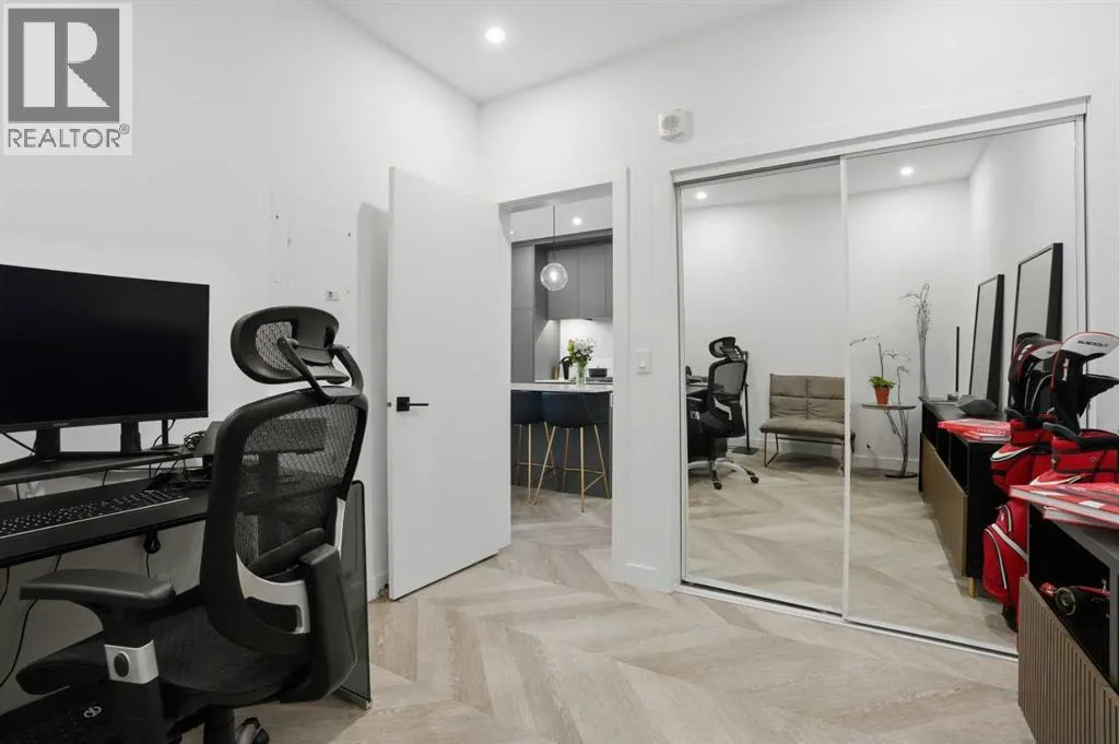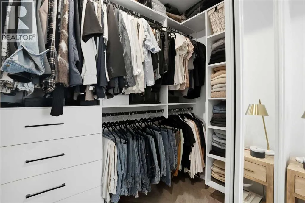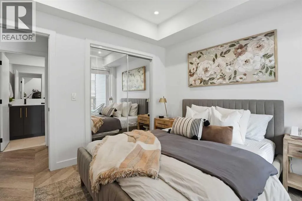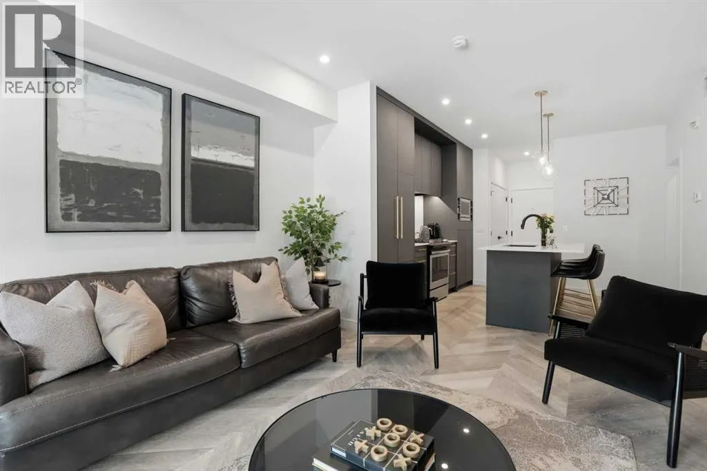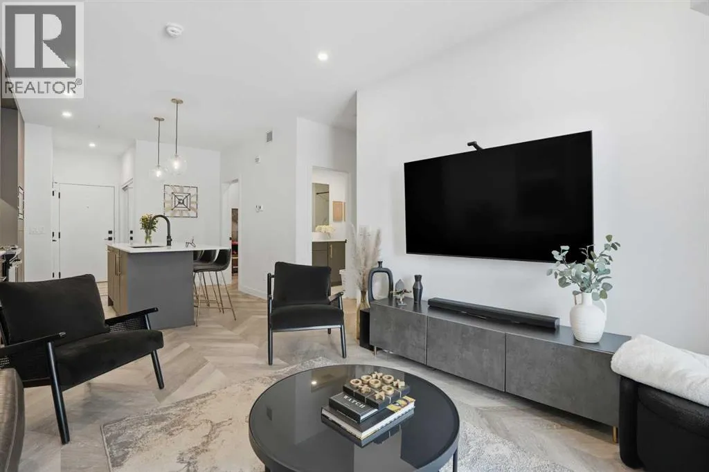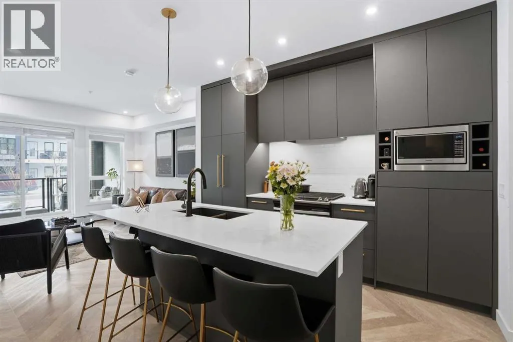 +"PublicRemarks": "Step into contemporary living in one of Calgary’s most sought after urban communities, the award-winning UNIVERSITY DISTRICT. This beautifully crafted TWO bedroom, one bathroom home offers stylish functionality and the rare benefit of a PRIVATE GROUND LEVEL ENTRANCE, creating the perfect blend of convenience and comfort.Inside, the thoughtfully designed layout welcomes you with soaring 9 foot ceilings, oversized windows with custom blinds, and a bright open-concept living area ideal for everyday living or hosting friends. The kitchen stands out with sleek quartz counters, full height soft close cabinetry, paneled appliances, a gas range, designer pendant lighting, and a large island that doubles as a casual dining space.Both bedrooms are spacious and versatile, whether used as sleeping quarters, a home office, or a guest room. The closets have been customized by CALIFORNIA CLOSETS, with full warranty remaining. The bathroom is elegantly finished with modern tilework and premium fixtures. Enjoy the everyday ease of in suite laundry with full sized washer and dryer. Luxury vinyl plank flooring throughout reinforces the home’s modern aesthetic and durability.A highlight of this unit is the expansive covered patio with a gas hookup, perfect for outdoor dining, relaxing mornings, or entertaining year-round, all with effortless access thanks to the street-front walkout design.Esquire by Truman Homes offers exceptional resident amenities including a fully equipped fitness centre, bike storage and repair stations, and the building is professionally managed for peace of mind. A titled parking stall in the heated underground parkade, and an independent storage locker are also included.Live just steps to an incredible mix of shops, cafés, fitness studios, dining, and entertainment. Grab groceries at Save-On-Foods, sip at Monogram Coffee, enjoy brunch at OEB, or catch a movie at Cineplex VIP – all without getting in your car. Endless green spaces, dog parks, and the B ow River pathway network elevate your outdoor lifestyle. Plus, the University of Calgary, Alberta Children’s Hospital, Foothills Medical Centre, and Market Mall are moments away, with quick transit or driving access to downtown.Offering professional appeal, a walkable lifestyle, and refined finishes throughout, this home is the ultimate choice for first time buyers, downsizers, and savvy investors alike. Welcome to University District living at its finest. (id:62650)"