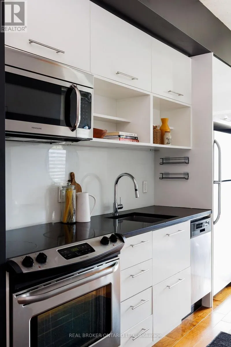 +"PublicRemarks": "Welcome To Luxury Living At Time & Space By Pemberton! Presenting A Suite Located In One Of Toronto's Desirable Prime Location. This Contemporary Suite Features 9-Foot Ceilings And Sleek Laminate Flooring Throughout, Creating An Open And Airy Atmosphere. The Well-Designed Layout Includes A Separate Kitchen And Living Area, With The Living Room Offering A Walk-Out To A Private Balcony, Perfect For Outdoor Relaxation. The Stylish Kitchen Is Equipped With S/S Appliances And A Stylish Quartz Countertop, Ideal For Modern Living. The Spacious Primary Bedroom Is Highlighted By A Large Window And A Private Balcony With 4pc Ensuite. A Den, Enclosed With A Door, Offers The Flexibility To Be Used As A Second Bedroom Or A Home Office. Enjoy Access To Resort-Style Amenities Including An Infinity-Edge Pool, Rooftop Cabanas, Outdoor BBQ Area, Games Room, Yoga Studio, Fully Equipped Gym. You Are Just Steps Away From St. Lawrence Market, Trendy Shops And Boutiques, Grocery Stores & Dining Options, And The Distillery District. With Quick Access To The Downtown Core, DVP, Union Station, And TTC. Surrounded By All The Conveniences Of City Life. (id:62650)"