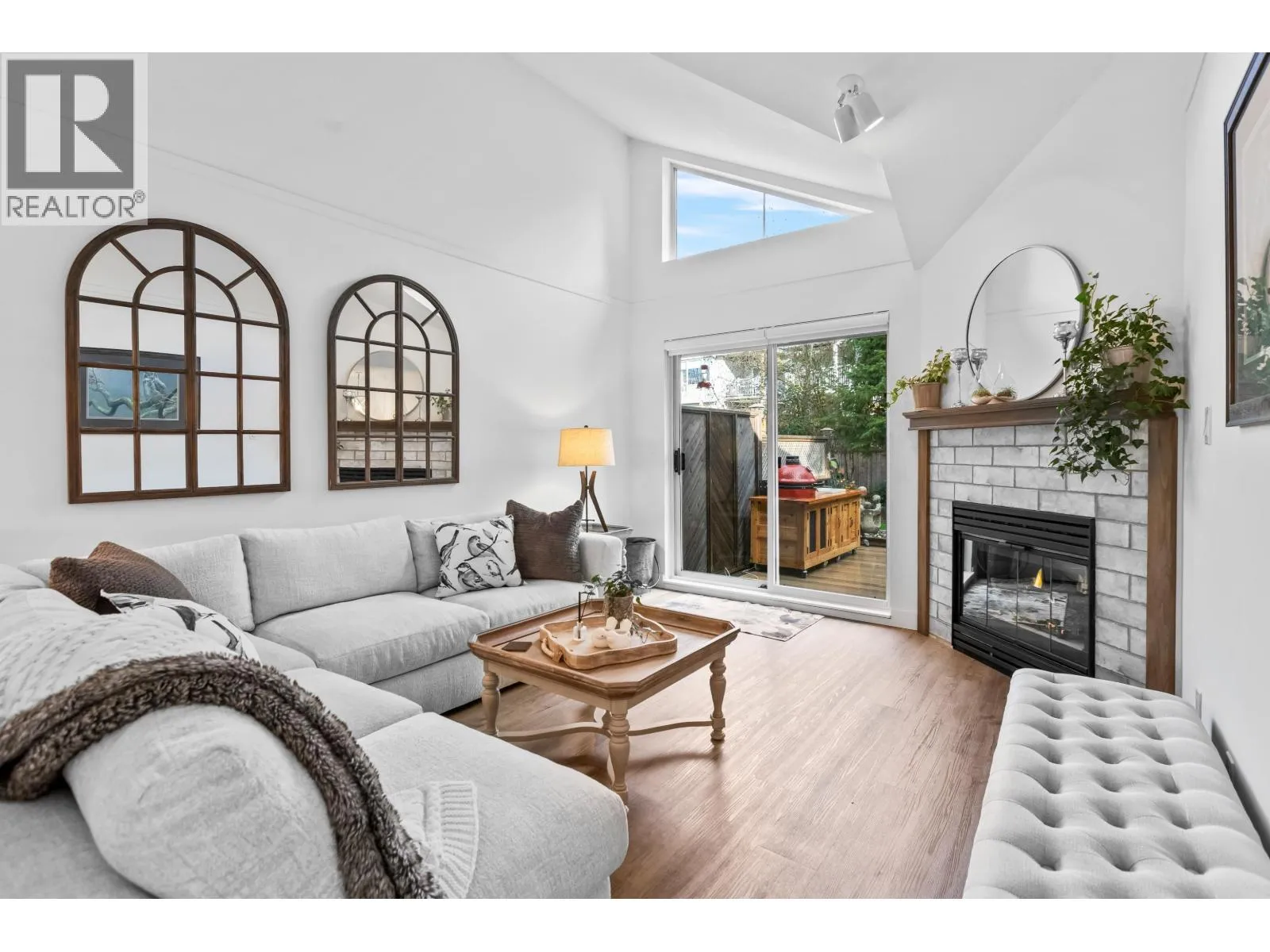 +"PublicRemarks": "Luxuriously renovated end-unit home in 55+ Fraser Glen!Feels like a detached house with parking for 2 vehicles and bright,vaulted living space featuring a cozy gas fireplace.Every detail shines-vinyl plank floors,fresh paint,designer lighting, and solid wood cabinetry.The gourmet kitchen boasts quartz counters,Italian tile backsplash,double dishwashers, with Fisher & Paykel appliances.Spacious primary suite with spa-like ensuite double vanities,quartz counters,soaker tub,& separate shower.Lower level offers a large rec room, den,& guest bedroom with full bath.Enjoy a front patio and a private backyard with a large composite deck.Centrally located to HWY 1, shopping & transit. (id:62650)"