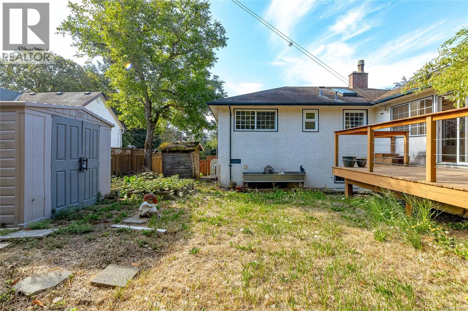 +"PublicRemarks": "You’ve Found Home. Welcome to a warm and character-filled 1950s residence where classic details—coved ceilings, oak floors, and thoughtful craftsmanship—blend seamlessly with modern upgrades. Enjoy the comfort of newer windows, an updated bathroom, and a heat pump that keeps the home perfectly tempered in every season. Grow your own produce in the sunny front veggie beds, unwind on the private rear patio, or explore the fenced backyard dotted with fruit trees and berry bushes. A wired garage offers the flexibility you need—creative studio, gym, workshop, or home office. Set behind a mature privacy hedge and walkable to Hillside Mall, transit, cafés, and Cedar Hill Rec Centre & a short bike ride or drive to Uvic and downtown Victoria. This home offers a rare combination of convenience and serenity. A wonderful option for first-time buyers, downsizers, or young families—detached living with no strata rules. Floor plans & Virtual Tour available. (id:62650)"