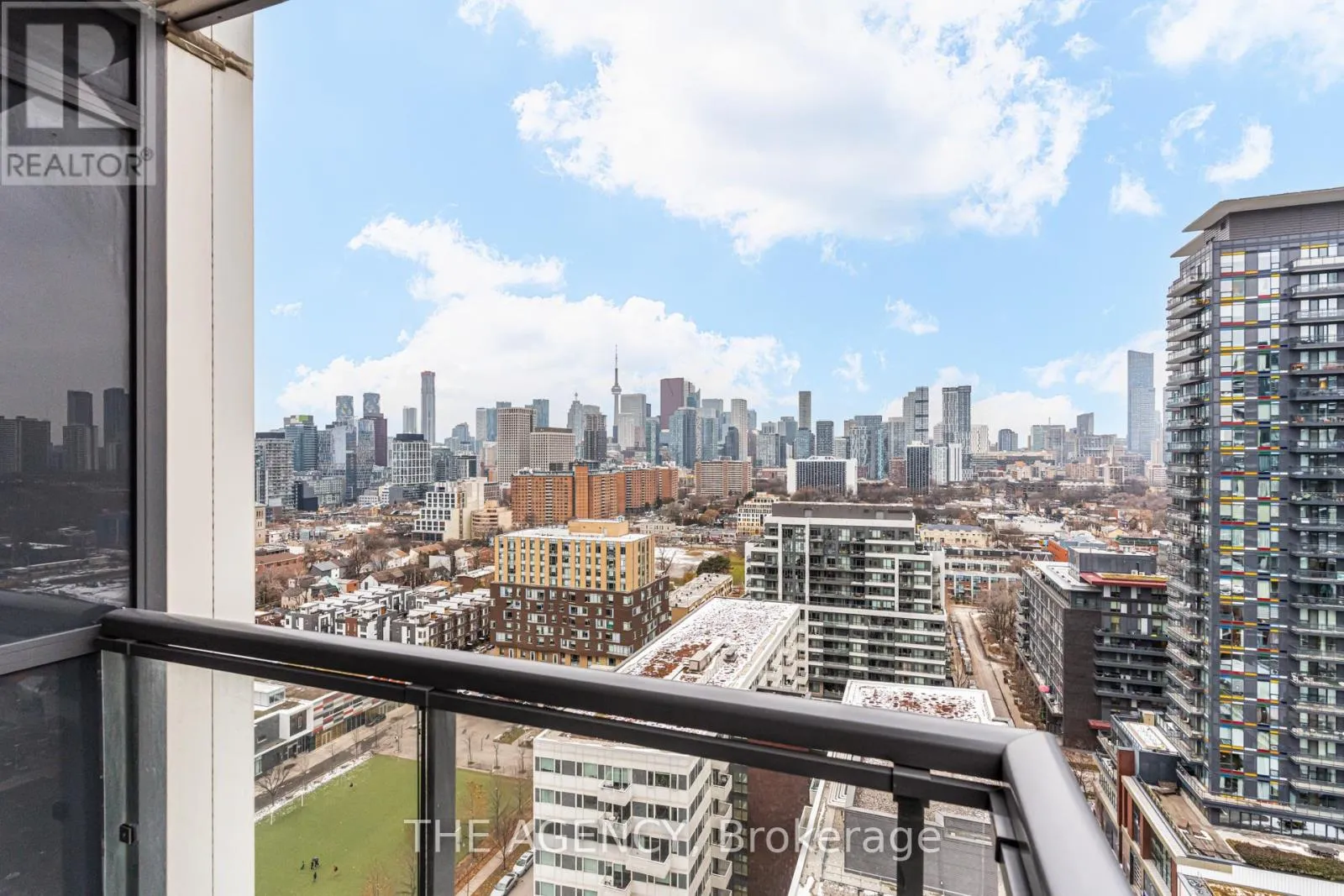 +"PublicRemarks": "Live at One Park Place by Daniels, in the heart of vibrant Regent Park. This bright and spacious corner suite offers 853 sq ft of well-designed living space, a versatile den, and a 59 sq ft balcony with northwest exposure. Enjoy modern finishes throughout: high ceilings, stainless steel appliances, quartz counters, a breakfast island, and ample cabinetry.The open-concept layout features stunning west-facing views of the downtown skyline and the 6-acre park below. Both bedrooms are generously sized with great natural light, and the suite includes two full bathrooms for added convenience.Residents have access to an impressive lineup of amenities-fitness centre, half-court basketball gym, squash courts, steam room, rooftop terrace, party room, and theatre. TTC, parks, shopping, and dining are all just steps away.A fantastic opportunity to lease a modern suite in one of downtown's most dynamic communities. (id:62650)"