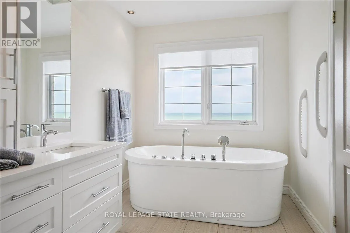 +"PublicRemarks": "Experience unparalleled lakefront living with this exceptional property, offering breathtaking vistas from nearly every room. Perfectly positioned within the prestigious Newport Yacht Club community, this home provides the rare convenience of mooring a boat just steps from your front door, along with effortless QEW access for commuting. This "linked" townhome lives like a detached home, sharing no common walls and boasting parking for six vehicles, including a full double garage. The open-concept main level is a showcase of style and comfort, featuring an updated kitchen with new quartz counters, crown molding, gleaming hardwood floors, a gas fireplace, and a separate dining room. Step through sliding doors to an oversized patio that stretches across a meticulously landscaped 100-foot yard, leading to a private waterfront patio where you can watch the sun rise or set over Lake Ontario. Upstairs, you'll find three generous bedrooms plus a home office, bedroom-level laundry, second gas fireplace in primary suite and two fully updated bathrooms. The primary suite opens onto a balcony where the panoramic lake and Toronto skyline views are simply unforgettable. Notable updates include new counters, sinks, faucets, roof, furnace, AC, light fixtures, and window treatments. A finished lower level with a walk-up to the yard adds even more living space. Rarely available, this is a truly special opportunity to secure a piece of Lake Ontario's waterfront-an address where every day feels like a getaway. (id:62650)"
