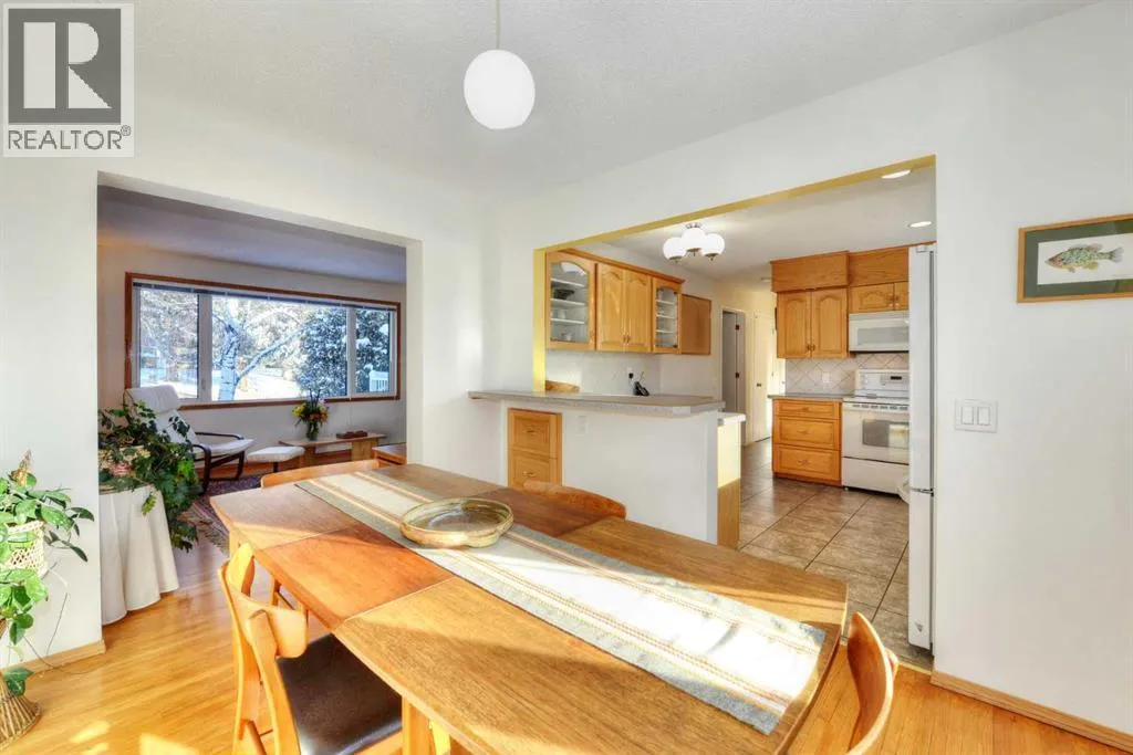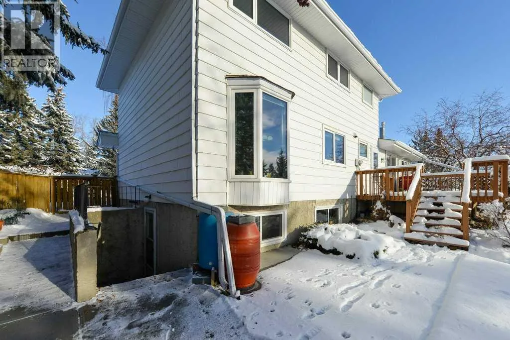 +"PublicRemarks": "Rare Dalhousie Gem! 5 bedroom, 2 1/2 bath family home, with over 2400+ sqft of living space complete with a lower level walk-up! This family home sits on a one-of-a kind oversized pie lot in a quiet bay cul-de-sac with a SW backyard flowing directly onto green space. Direct daily access to parklands, pathways, and extra room to play. Hardwood floors across the main and upper levels create a warm, cohesive backdrop while triple-glazed windows on these floors enhance energy efficiency and quiet comfort. Large front porch welcomes morning coffees before stepping into a large foyer and a sunlit living room with oversized windows that frame mature trees. A bayed dining room is ideal for gatherings and connects easily to a well-designed kitchen with abundant cabinetry, generous counter space, a wide window above the sink and a peninsula island that encourages casual conversations during meal prep. A spacious main floor family room offers a relaxing hub with a gas fire set into a full stone feature wall, while sliding glass doors extend living outdoors to a substantial deck with views toward the city park and mountains. A convenient powder room completes this level. Upstairs the master bedroom and 3 additional bedrooms allows for flexibility for kids, guests, work-from-home, or room to create a spa inspired retreat with ensuite and walk in closet! A family 4 piece bathroom completes this level. The fully finished lower level expands the home’s versatility with a separate walk-up entrance providing exceptional functionality for extended family, teens, nanny or privacy minded guests. Huge recreation room for movie nights and games, a den with built-ins that suits an office or creative space, a 5th bedroom and a full 4 piece bathroom. Two high-efficiency furnaces supply flexible heating control across the home and a new permitted electrical panel and electrical work using city-approved procedures deliver peace of mind for long-term safety and an insulated, drywalled double garage includes an extra-high ceiling and door ideal for a small motorhome, or ski-box-equipped vehicle,, complemented by a workbench and durable flooring. Outdoor living is exceptional thanks to a massive south yard with established trees, generous lawn space and a highly productive fruit, vegetable and herb garden set across 3 terraced beds. A covered garden gazebo creates a quiet retreat. An added bonus is the back gate opens directly to an expansive green space and a children’s playground and the home sits within an easy walk to all 7 schools (Grades 1-12 and an IB program) plus a short, pleasant pathway stroll to Dalhousie LRT Station for effortless commuting to UofC and the core. Full range of shops, dining, 2 major grocery stores and services at Dalhousie Station add daily convenience, while nearby parks, an off-leash area, tennis, basketball courts, and an active community association for all ages. Highly walkable location close to the University of Calgary and all major amenities (id:62650)"