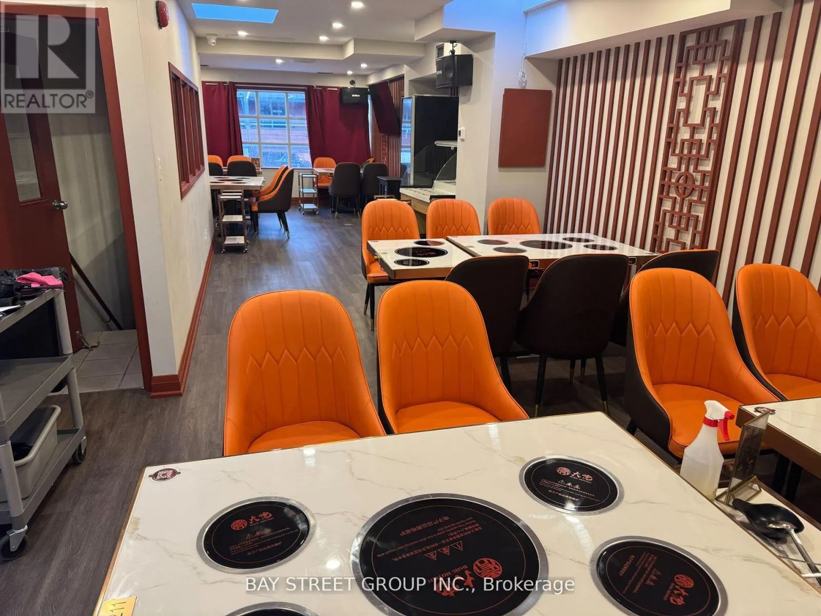 +"PublicRemarks": "Situated at the intersection of Queen and Bathurst, this 952 sq ft space is currently a Thai restaurant offering dine-in and takeout, with a large basement for storage. Features include 8ft and 4ft kitchen exhaust hoods and a walk-in cooler in the basement. It's a prime spot for delivery and takeout. Rent is $6,723 inclusive of TMI and HST, with a lease running until June 2030 plus a 5-year renewal option. The space can be easily adapted to suit any concept. (id:62650)"