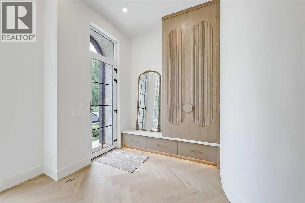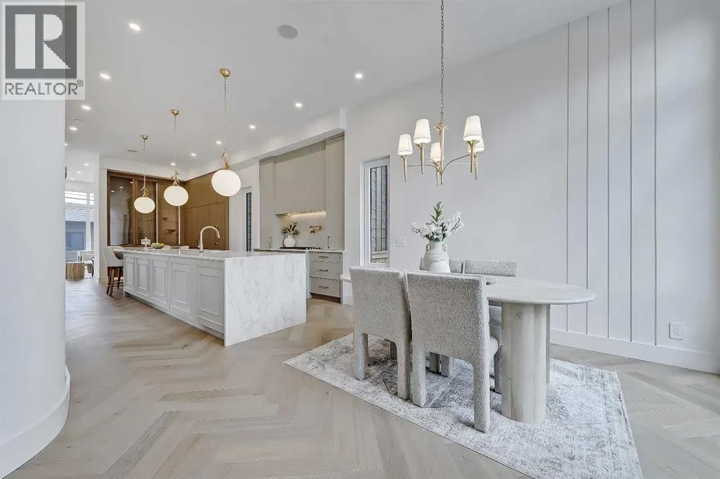 +"PublicRemarks": "**Get $10,000 Back! Make your move into luxury living effortless with this exclusive buyer bonus.**Located in the heart of North Glenmore Park, this move-in-ready luxury detached infill by Black Label Designer Homes offers refined architecture, elevated finishes, and a thoughtfully designed layout on a quiet, tree-lined street near parks, schools, and the golf course. The main floor is anchored by 11-ft ceilings and wide-plank engineered white oak herringbone hardwood, setting a sophisticated tone from the moment you enter. A full-height glass front door opens to a welcoming foyer with custom millwork and integrated storage. The front dining room offers a more formal gathering space, while the central kitchen is a true showpiece, featuring full-height custom cabinetry and a sculptural, rounded quartz island with a waterfall edge.The upgraded JennAir RISE appliance package includes a 36” gas cooktop, built-in wall oven, under-counter microwave drawer, panel-ready refrigerator, and dishwasher. Additional highlights include a Blanco undermount sink, Delta faucet, pot filler, and integrated LED undermount and skirt lighting found throughout the home. The rear living room is filled with natural light and centred around an elegant gas fireplace with a custom porcelain two-tiered mitre mantle and built-in cabinetry.A functional mudroom connects to the detached double garage, offering quartz bench seating, custom storage, and everyday convenience. The powder room makes a bold design statement with a curved vanity, quartz surfaces, designer lighting, and a VOVO smart bidet toilet.Upstairs, the vaulted primary suite features open wood beams, oversized windows, and a walk-through closet with custom built-in millwork and LED lighting. The spa-inspired ensuite includes a freestanding soaker tub, dual vessel sinks, quartz counters, a built-in steam shower with body jets, and a skylight. All bathrooms throughout the home feature in-floor heating and VOVO smart bidet toil ets, including the upper main bath with a wood slat feature wall. The upper laundry room is finished with quartz counters, designer tile backsplash, custom cabinetry, and a hanging rod. Two spacious secondary bedrooms with walk-in closets complete the upper level.The fully developed basement expands the living space with a large recreation room, fourth bedroom or gym, full bathroom, and a striking wet bar with quartz countertops, island, dishwasher, and bar sink—ideal for entertaining. A tankless hot water heater ensures year-round comfort.North Glenmore Park is one of Calgary’s most desirable inner-city communities, offering a rare blend of tranquility and convenience. Steps from Glenmore Athletic Park, Sandy Beach, and the Elbow River pathway system, and walking distance to North Glenmore Park School and Central Memorial High School, with quick access to Mount Royal University, Lakeview Golf Course, Marda Loop, and major routes including Crowchild, Glenmore, and Sarcee Trail. (id:62650)"