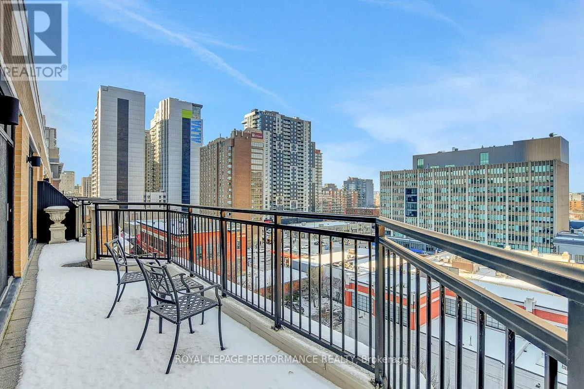 +"PublicRemarks": "Penthouse Luxury in the Heart of Downtown Ottawa. Welcome to The Lanesborough, a prestigious Domicile-built residence in the heart of downtown Ottawa, completed in 2004. This spectacular Penthouse (PH2) is a rare offering that blends sophisticated design with downtown convenience. From the moment you step inside, this bright corner unit will impress with its soaring 10-ft ceilings, expansive 1515 sq/ft layout, and stunning wrap-around terrace w/gas bbq hook up offering downtown views of the city skyline. Thoughtfully designed for both comfort and entertaining, this unit features 2 spacious bedrooms, a full-sized den and 2 full bathrooms. The open-concept kitchen is a chef's dream, showcasing custom cabinetry, granite countertops, a gas range, and seamless flow into the elegant living area, complete with a cozy gas fireplace. Step outside to the sprawling terrace, where you'll find multiple seating areas and gas hook-up for bbq, creating your own private urban oasis. Direct access to the terrace can be entered through the primary bedroom, den and living room and includes the following: Gas bbq, storage shed, planters and existing outdoor patio and bistro sets. The primary bedroom retreat offers double closets, and a luxurious 3-piece ensuite. The den is ideal for a home office or media room. The second bedroom with california shutters and ample closet space is conveniently located adjacent to the main full bathroom, making it perfect for guests or family. Additional features include: new hardwood flooring throughout, laundry/storage room with built-in central vacuum, 2 underground parking spaces and 1 storage locker. The building offers the following amenities: Two elevators, a party room and bike storage. Situated just steps from the ByWard Market, Rideau Centre, Ottawa University and everyday essentials like grocery stores and transit. Flexible occupancy available. Your downtown Ottawa penthouse lifestyle awaits you! 24 hrs irrevocable on all offers. (id:62650)"