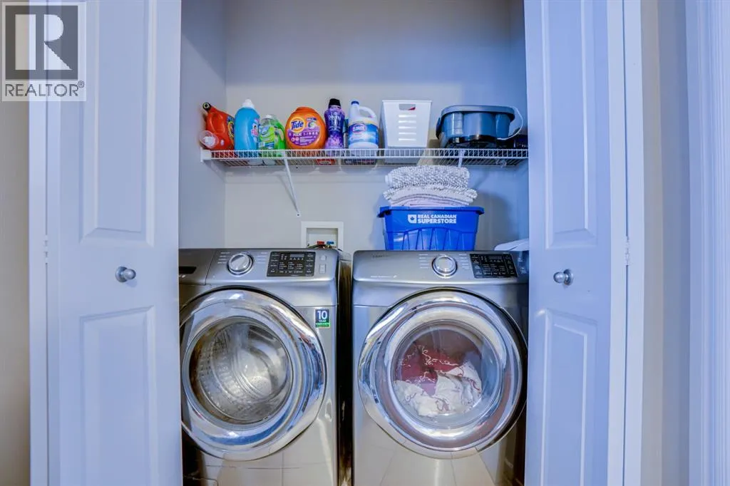 +"PublicRemarks": "Welcome to this well-kept 3rd floor apartment located in the desirable community of Saddle Ridge, offering a great location and a comfortable, low-maintenance lifestyle. The unit is south-facing and features an open floor plan, new vinyl plank flooring, fresh paint, a large window and a patio door that leads to your private balcony—perfect for enjoying natural light throughout the day. The large living area is perfect for family or guests with patio door leading to balcony. Adjacent to the living area is the space for dining. The kitchen which is thoughtfully designed with quartz countertops, ample cabinetry making it both stylish and functional. A separate laundry area beside the kitchen adds to the practicality of the layout.This unit offers two spacious bedrooms and two full bathrooms. The good-sized primary bedroom includes its own ensuite bathroom and a huge closet along with a window for outside view. The second bedroom too has its own closet and big window for the views of outdoors. The other full bathroom serves the second bedroom.Additional highlights include titled underground parking for year-round convenience and security. The location is hard to beat as it is right across the 80 ave plaza offering a convenience store, restaurants, grocery stores, medical office , Tim Horton's and more. Hugh A. Bennett School is just a short walk away, along with a nearby park and pond for outdoor enjoyment. Transit facility is near to the building, making commuting around Calgary simple. This property is a great option for investors or future owners looking for comfort, convenience, and a low-maintenance lifestyle. (id:62650)"