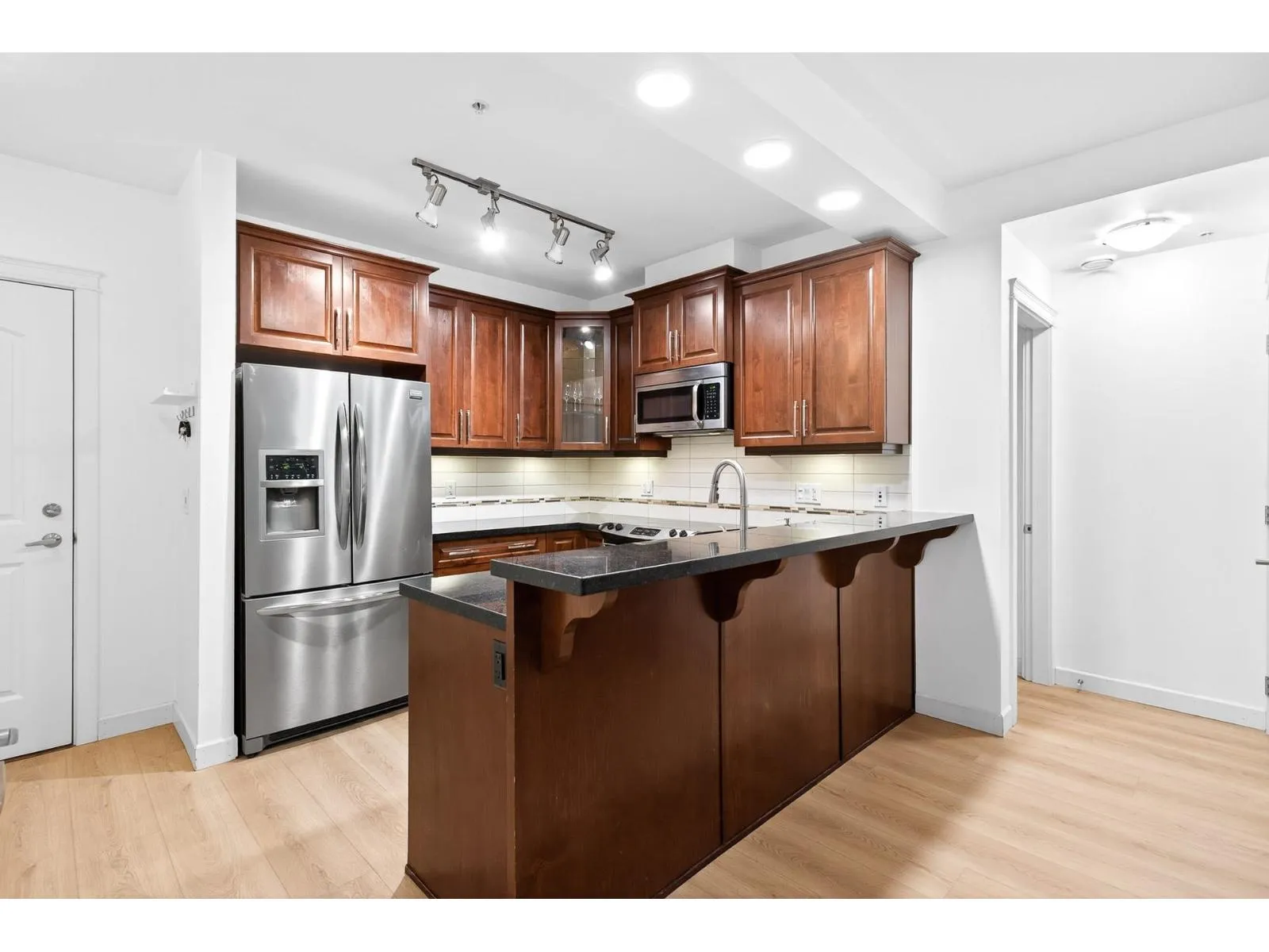 +"PublicRemarks": "Best Price in the Development, Welcome to Hudson & Singer in the heart of Willoughby. This spacious 1-bedroom, 1-bathroom home features an open layout with a large kitchen island , sleek finishes, perfect for entertaining, spacious east-facing balcony overlooking the quiet side of the building. Just steps to Willoughby Town Centre with its shops, restaurants, and groceries, and across from Yorkson Community Park. Complete with 1 parking space and1 storage locker. Low maintenance fees. Two pets allowed and rental friendly Perfect for first-time buyers or investors! (id:62650)"
