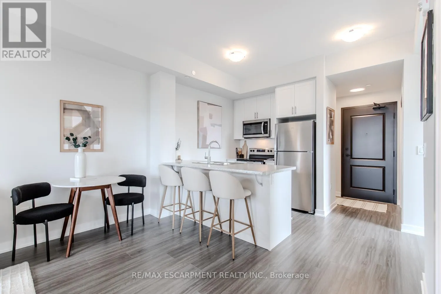+"PublicRemarks": "Stunning never lived in 1 Bedroom + Den 1 Bath unit. Be the first to live in this stunning suite, featuring modern, contemporary finishes. The spacious kitchen boasts brand new stainless steel appliances (fridge/freezer, over-the-range microwave, and dishwasher), ample counter space, and sleek cabinetry. The open-concept living area extends to a cozy den, perfect for a home office or extra living space. Key Features: In-Suite Laundry, Individual Thermostat. Geo-Thermal Heating and Cooling. Amenities: Bike storage room, fitness center, and smart parcel lockers. (id:62650)"