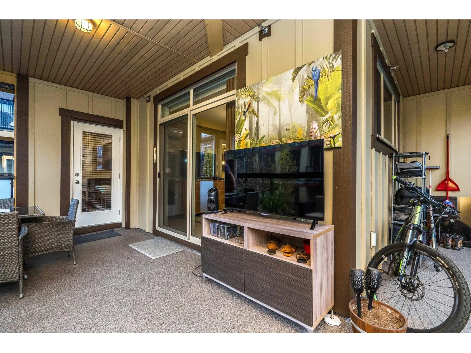 +"PublicRemarks": "Welcome to this stunning open concept Rowhome with 10ft ceiling on main. This Luxury 2,560 sq.ft. is a former show home designed by Sarah Gallop Design. Offering 4-5 bedroom with premium upgrades, designer furniture, and accessories which the owner is including in the purchase, Gourmet kitchen featuring integrated Fisher & Paykel appliances, a gas range, dual wine coolers, built-in buffet, and a custom credenza. Spacious deck with undisturbed views & BBQ hookup, perfect for entertaining. The Master bedroom with 5-piece spa-inspired ensuite, chandelier, walk-in closets. Lower Level: Ideal for guests or extended family, featuring a bedroom, full bath, wet bar, fridge, and wine rack. Double side by side garage with epoxy finishes, Security & Vac Sys, close to shopping, schools and Hwy 1. (id:62650)"