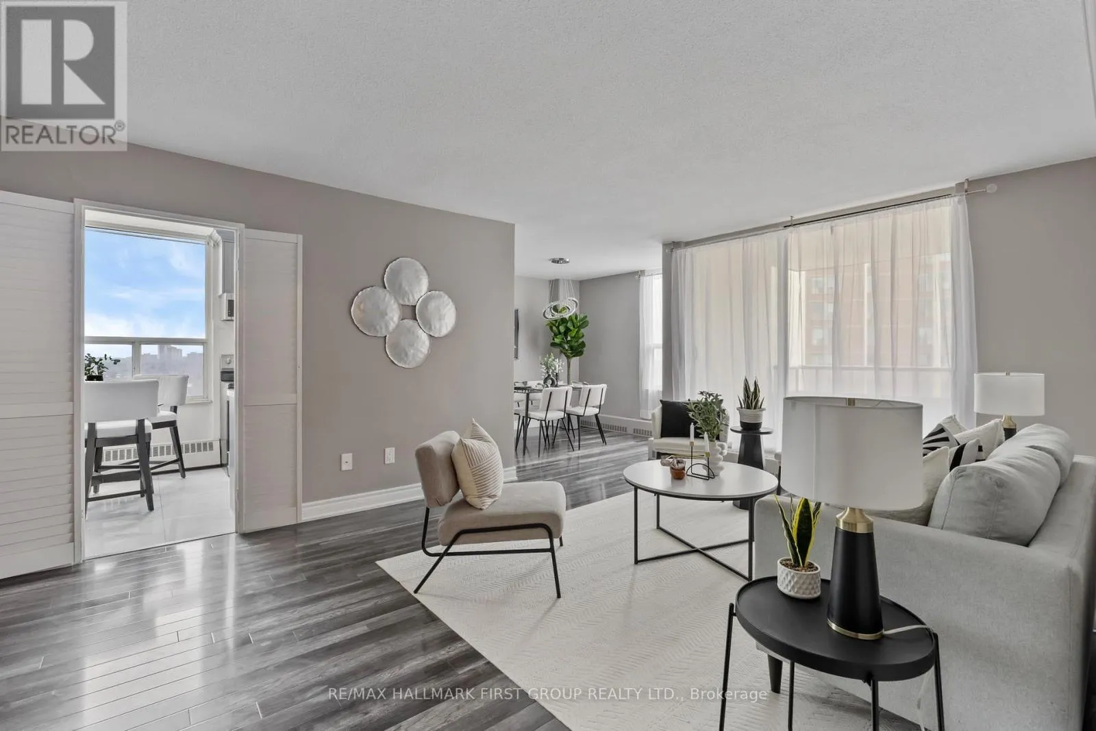 +"PublicRemarks": "Rarely Offered Immaculate & Updated 3-Bedroom Corner Unit in the Flemington Park Community offering 1,128 Sq Ft of Bright, Open Living Space! This spacious condo has been fully renovated from top to bottom. It features windows in every direction, filling the home with natural light throughout the day. Enjoy a beautiful updated kitchen with a large bright window, updated laminate and marble flooring, and a generous living/dining area that opens to an enclosed balcony/sunroom-perfect for year-round use. Three well-sized bedrooms provide excellent flexibility for families, guests, or a home office. The unit includes 1.5 baths, in-suite laundry, and a large internal storage room for added convenience. Turn-Key Move-in ready and exceptionally maintained, this rarely available layout offers comfort, space, and incredible value. A must-see opportunity! (id:62650)"