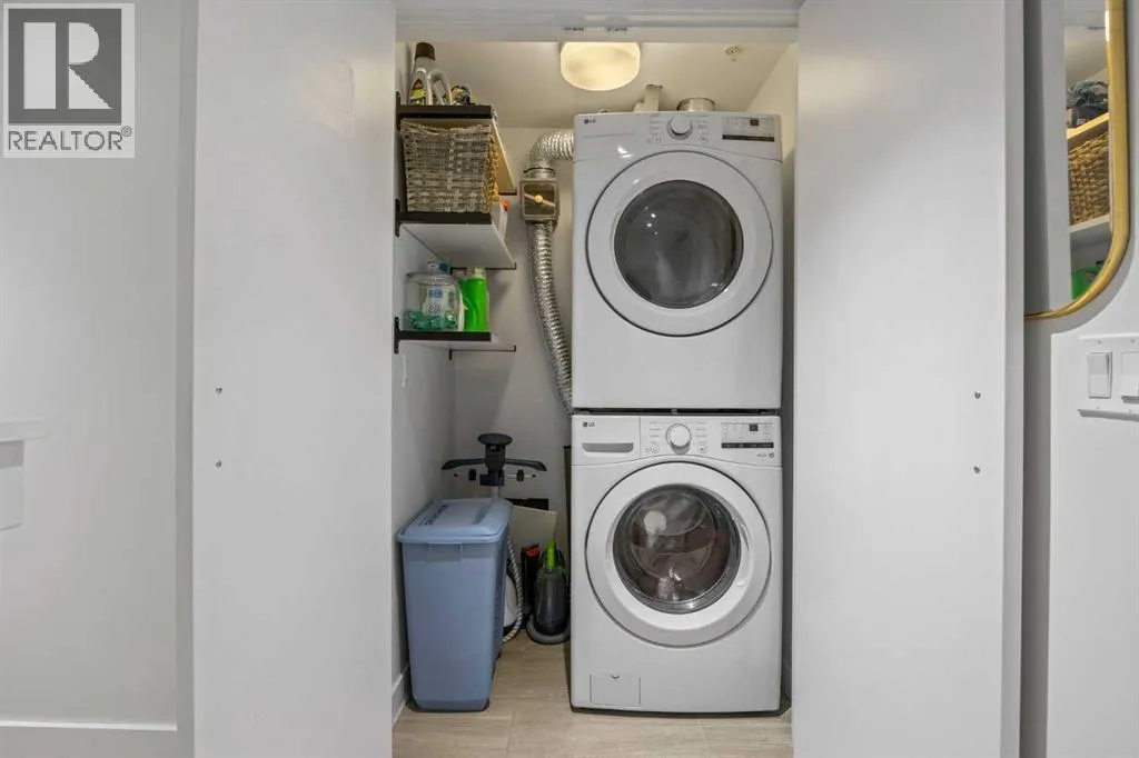 +"PublicRemarks": "Discover a one-of-a-kind urban retreat in the heart of Calgary’s vibrant Beltline, just steps from countless premier shops, services, restaurants, cafés, and all the energy of inner-city living! This 2 storey unit features its own private, exterior entrance, welcoming you into a space defined by soaring high ceilings that create an immediate sense of openness, grandeur, and comfort. The open concept main living area is designed for effortless entertaining. The modern kitchen is equipped with stainless steel appliances, full-height cabinetry, ample storage, generous counter space, and a large island with seating for four. Adjacent you have the spacious dining area with access to a cleverly designed storage space beneath the stairs, complete with built-in cabinets ideal for pantry use, a huge perk for condo living. Throughout the home, you’ll find new vinyl plank flooring for easy, low-maintenance living, complemented by new 6" baseboards for a clean, contemporary finish. Additional upgrades include fresh paint, a new washer and dryer, and two wall-mounted AC units to keep you comfortable year round. Upstairs, you’ll find the laundry room, complete with shelving and a stacked washer and dryer for maximum convenience. The primary bedroom is a true retreat, offering large windows and even enough room for a writing desk or vanity. It features a walk-in closet with built-ins and a luxurious 5-piece ensuite complete with a double vanity, generous counter space and storage cabinets, a soaker tub, a frameless stand-up shower, and a linen closet. The second bedroom is a great size and enjoys easy access to the second bathroom, finished with the same upscale features found throughout the home. This upper level also connects directly to the main building, where you’ll find a party room and access to the parkade. And the standout feature? This stunning unit includes its own PRIVATE, DOUBLE GARAGE with its own private storage unit, a rare offering that delivers convenience, secur ity, and additional space you won’t find elsewhere. The building also offers concierge service for added comfort. With large windows, plenty of natural light, modern upgrades, and a truly unbeatable location, this exceptional Beltline home is bright, stylish, and move-in ready! (id:62650)"