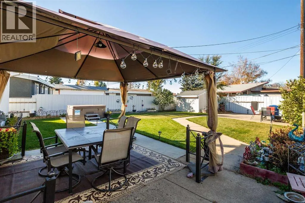 +"PublicRemarks": "Welcome to your beautiful oasis in the quiet community of Majestic Place. This well maintained bungalow has been lovingly cared for and shows pride of ownership throughout. With 4 beds and 2 baths, you have the room you need, whether you're downsizing or getting into home ownership. In addition to a beautiful home, you will be blown away by everything this yard has to offer. The backyard oasis includes a gazebo, bbq cover, hot tub, two sheds, large lawn and parking pad. The large lot offers alley access and plenty of room in the back for you to build your dream garage. Come take a look today and make this house your home! (id:62650)"