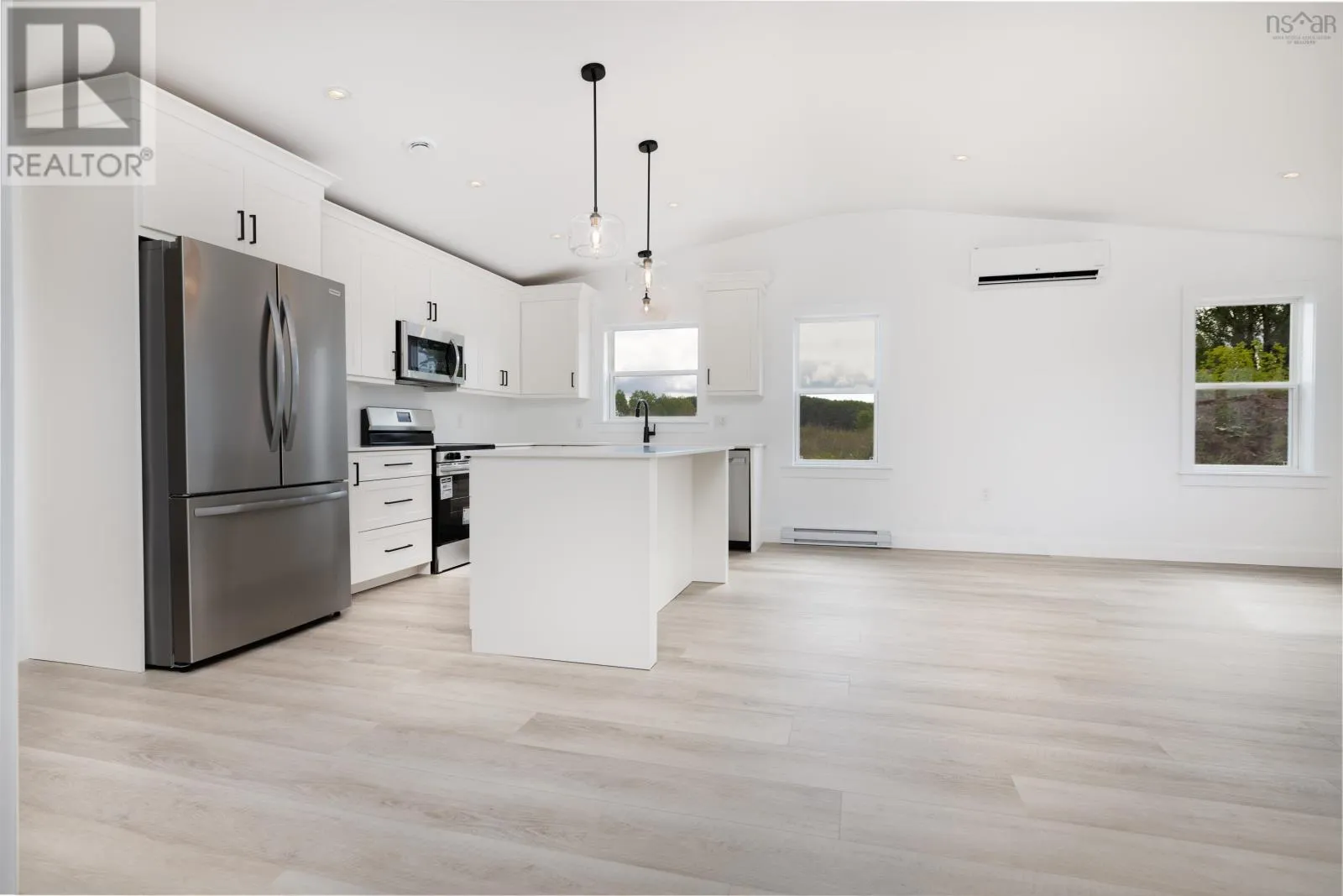 countertops, and a large eat-up island thats perfect for casual dining. Stainless steel appliances add a modern touch, making this kitchen as functional as it is stylish. The bright and spacious living room and dining room area seamlessly blend together, providing a perfect space for entertaining. From here, access the covered back deck or patio, ideal for outdoor relaxation and gatherings. The primary bedroom is a tranquil retreat, complete with a walk-in closet and an ensuite bathroom, ensuring privacy and convenience. A secondary bedroom offers flexibility for guests or a home office, while the main floor bath and a conveniently located laundry closet add to the home’s practicality. High-quality Kohltech windows flood the home with natural light, while a ductless heat pump ensures efficient heating and cooling throughout the year. The entire home is adorned with high-quality vinyl plank floors, providing durability and a sleek look. An attached single-car garage, equipped with an electric door opener and epoxy floor, offers secure and convenient parking. The property is fully landscaped with a paved driveway, enhancing its curb appeal and providing a welcoming first impression. The Lilac is more than just a house; it’s a home designed for comfortable, modern living. Dont miss the opportunity to be part of this new development in Stewiacke and enjoy all that this beautiful home has to offer. (id:62650)