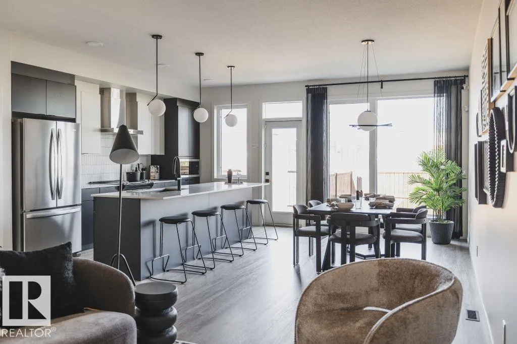 +"PublicRemarks": "Welcome to Fenwyck — a premier community in Spruce Grove where modern living meets nature. Surrounded by lush forest, trails, and close to schools and amenities, Fenwyck offers the perfect balance of tranquility and convenience. With over 1500 square feet of open concept living space, the Kingston-D, with rear detached garage, from Akash Homes is built with your growing family in mind. This duplex home features a SEPARATE SIDE ENTRANCE, 3 bedrooms, 2.5 bathrooms and chrome faucets throughout. Enjoy extra living space on the main floor with the laundry on the second floor. The 9-foot main floor ceilings and quartz countertops throughout blends style and functionality for your family to build endless memories. Rear double detached garage included. PLUS $5000 BRICK CREDIT! **PLEASE NOTE** PICTURES ARE OF SHOW HOME; ACTUAL HOME, PLANS, FIXTURES, AND FINISHES MAY VARY AND ARE SUBJECT TO AVAILABILITY/CHANGES WITHOUT NOTICE. (id:62650)"