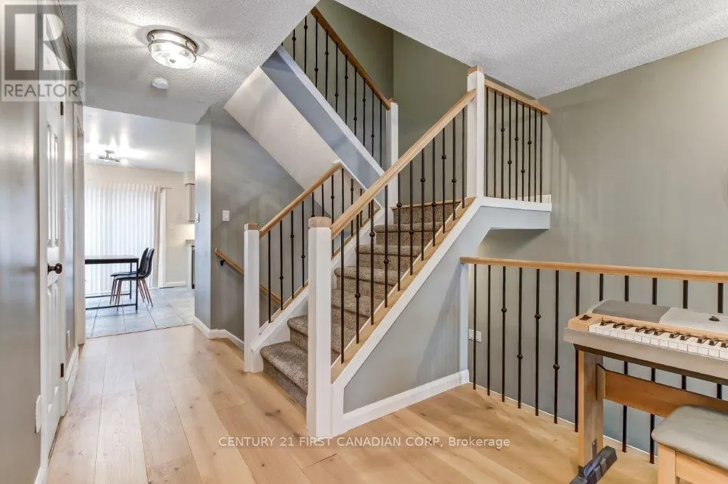 +"PublicRemarks": "Discover modern living in the heart of London's historic Woodfield neighbourhood. This stylish three-level townhouse at 609 Colborne Street, Unit 2, offers the perfect blend of location, convenience, and contemporary upgrades. Step inside to find recently installed hardwood floors throughout the living room and upper level, elegant baluster rails, fresh trim, and updated light fixtures that create a polished, cohesive look. Both bathrooms have been thoughtfully renovated in 2025, featuring modern finishes. A generous eat-in kitchen offers ample cabinetry with high gloss stone counters and features sliding glass doors to a freshly resurfaced balcony overlooking the lower enclosed patio. Upstairs has a sizable master bedroom with two double closets, a second bedroom with a walk-in closet, a laundry in the hall with a raised washer, dryer and a folding table plus a study/office alcove with a built-in desk.. The finished walkout level includes a cozy fireplace and access to a private interlocking brick patio. This home blends modern convenience with heritage charm, offering the perfect lifestyle for professionals, couples, or small families seeking both comfort and character. (id:62650)"
