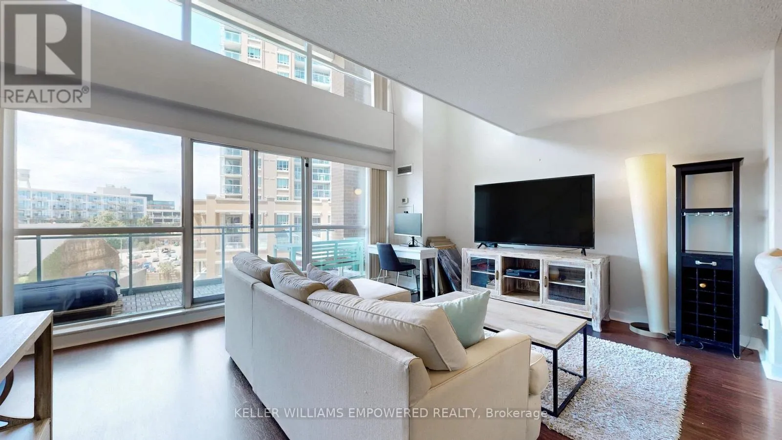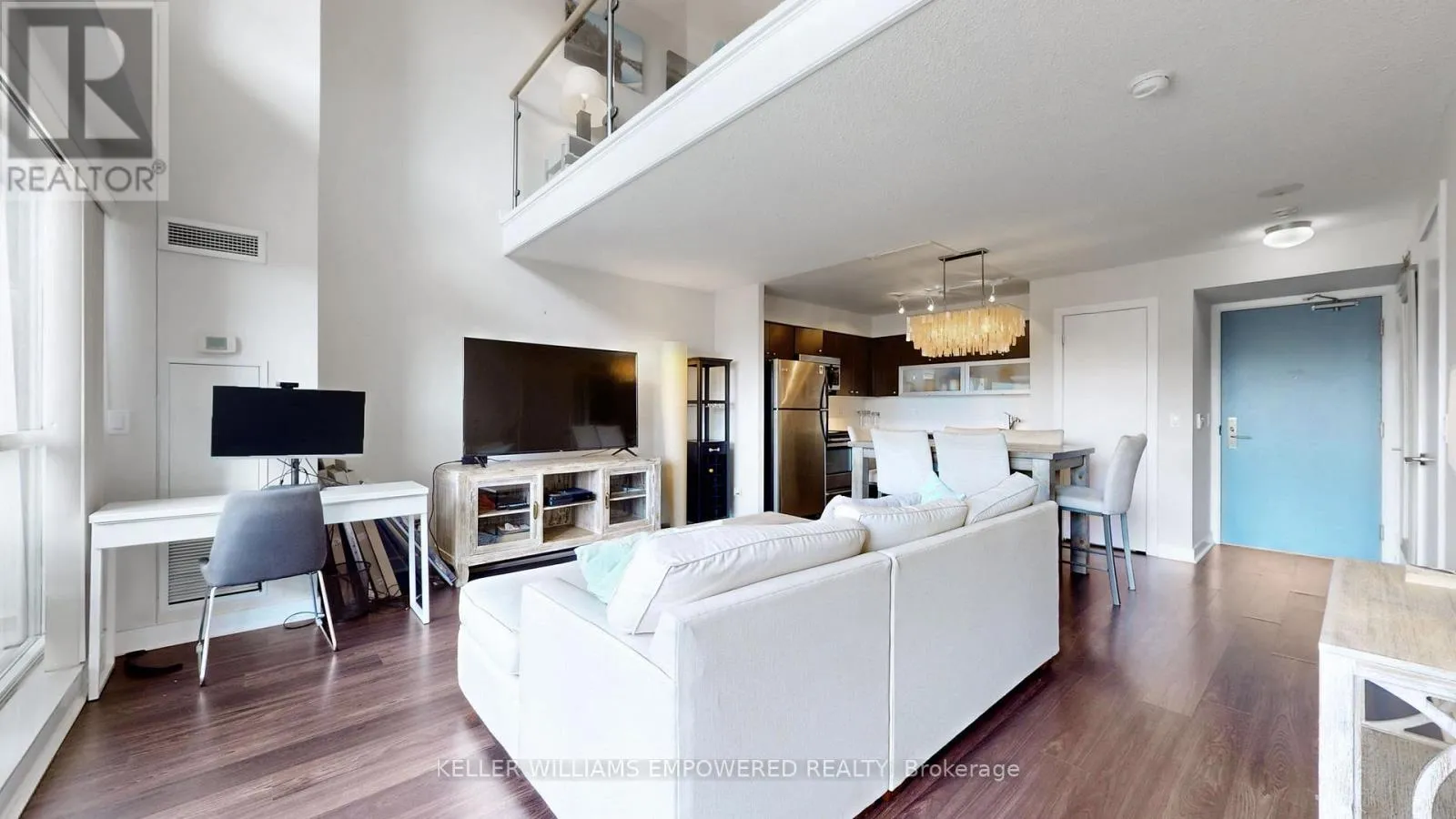 +"PublicRemarks": "Rarely Offered! Spacious 2-Storey Loft (Approx. 797 Sq.Ft.) Showcasing One of the Most Coveted Layouts in the Building. Offered Partially Furnished for Your Convenience, Including Large Kitchen Island with High-top Chairs, Bed-frame with Mattress & More! Also Available Unfurnished. This Bright, Airy Loft Features Soaring 16'7" Ceilings, a Striking Floor-to-Ceiling West-Facing Window Wall with Direct Walk-Out to a Large Terrace, Flooding the Space with Natural Light Throughout the Afternoon. Two Bathrooms, One on Each Level, Add Everyday Functionality. Enjoy Exceptional Building Amenities and an Unbeatable Location in the Heart of Liberty Village, Surrounded by Trendy Shops, Cafés, Restaurants, and Fitness Studios. Steps to the Pedestrian King-Liberty Bridge for Easy Access to King St. & TTC. Nearby Recreation Includes the Martin Goodman Waterfront Trail, Coronation Park, and Trinity Bellwoods Park. Minutes to Exhibition GO Station, BMO Field, and the CNE Grounds! (id:62650)"