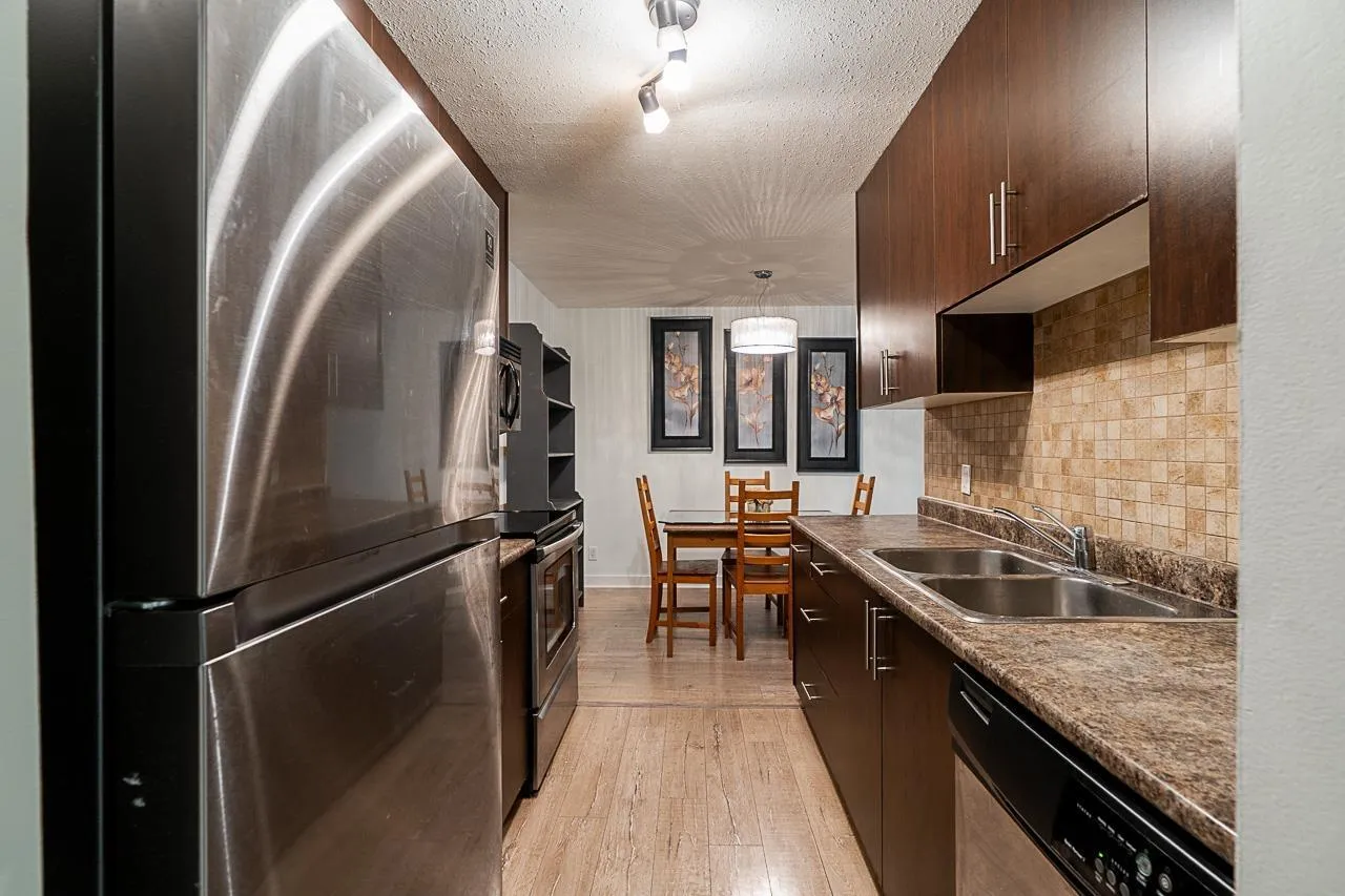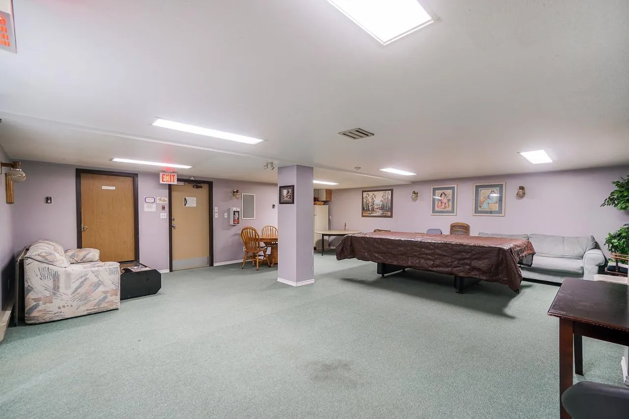 +"PublicRemarks": "WELCOME TO PARKWOODS! This is a rare opportunity to own a spacious one-bedroom home in a well-managed strata, ideally located within walking distance to transit, SkyTrain, Surrey Central Mall, hospital, restaurants, and entertainment-while still enjoying a quiet, open-space neighbourhood. Cozy up by the gas fireplace with gas included in the strata fees. The home features an oversized living room and a large east-facing balcony, plus a new washer/dryer set, updated dining chandelier, and a newer fridge. Pet-friendly (2 cats or 1 dog allowed) and rental-friendly. Comes with 1 parking stall and 1 storage locker. Amenities include a pool table, gym, and sauna! (id:62650)"