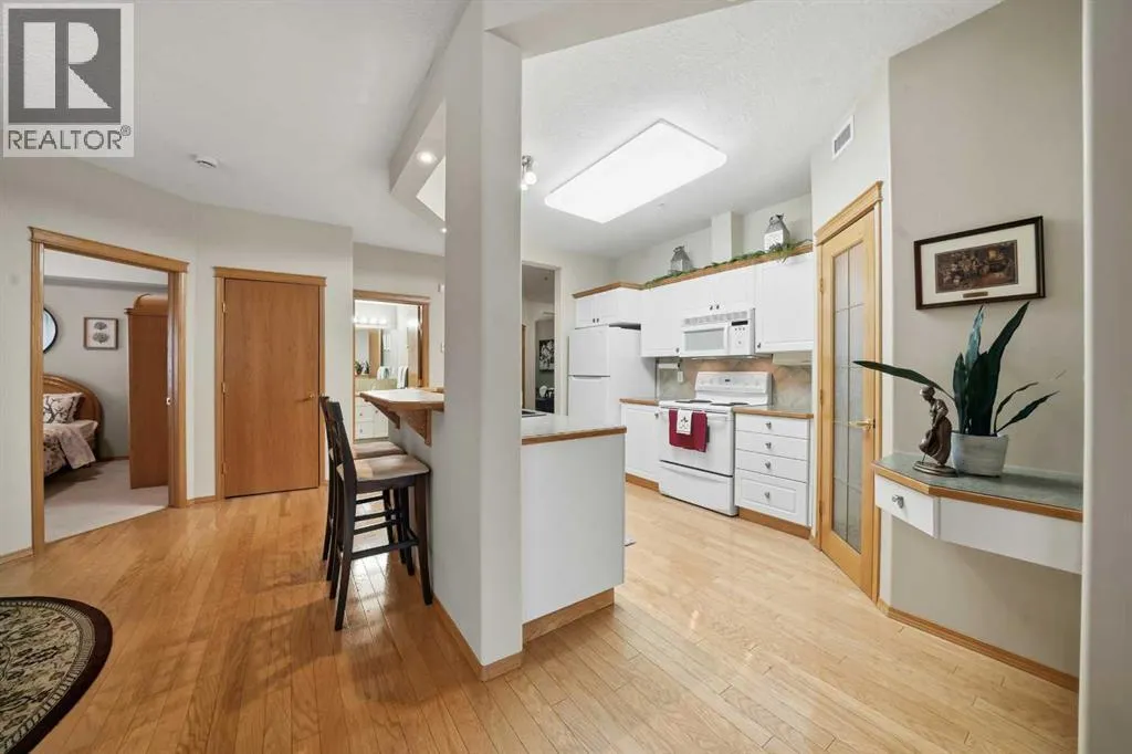 +"PublicRemarks": "This spacious and beautifully maintained condo offers a grand first impression with a large foyer that sets the tone for the open and airy layout throughout. Walk into the large kitchen and enjoy the beautiful cabinets with plenty of counter space that is open to the dining room and living room, making this a great space to entertain your friends or spend time with family. The bright, oversized windows fill the space with natural light, making it a bright and sunny home. The two generous decks extend your living space outdoors—one accessible from the living room and the other one from the primary bedroom, perfect for morning coffee or evening relaxation. The unit features excellent in-suite storage, plus an additional storage locker. You'll also enjoy the convenience of two titled parking spots—one underground and one above ground. Located close to walking trails and shopping, this building offers an unbeatable lifestyle with a host of amenities: indoor pool and hot tub, library, games room, community center, workshop, party room with a full kitchen, guest suites on each floor, craft room, fitness room and two roof top patios. New fridge in Aug 2025. (id:62650)"