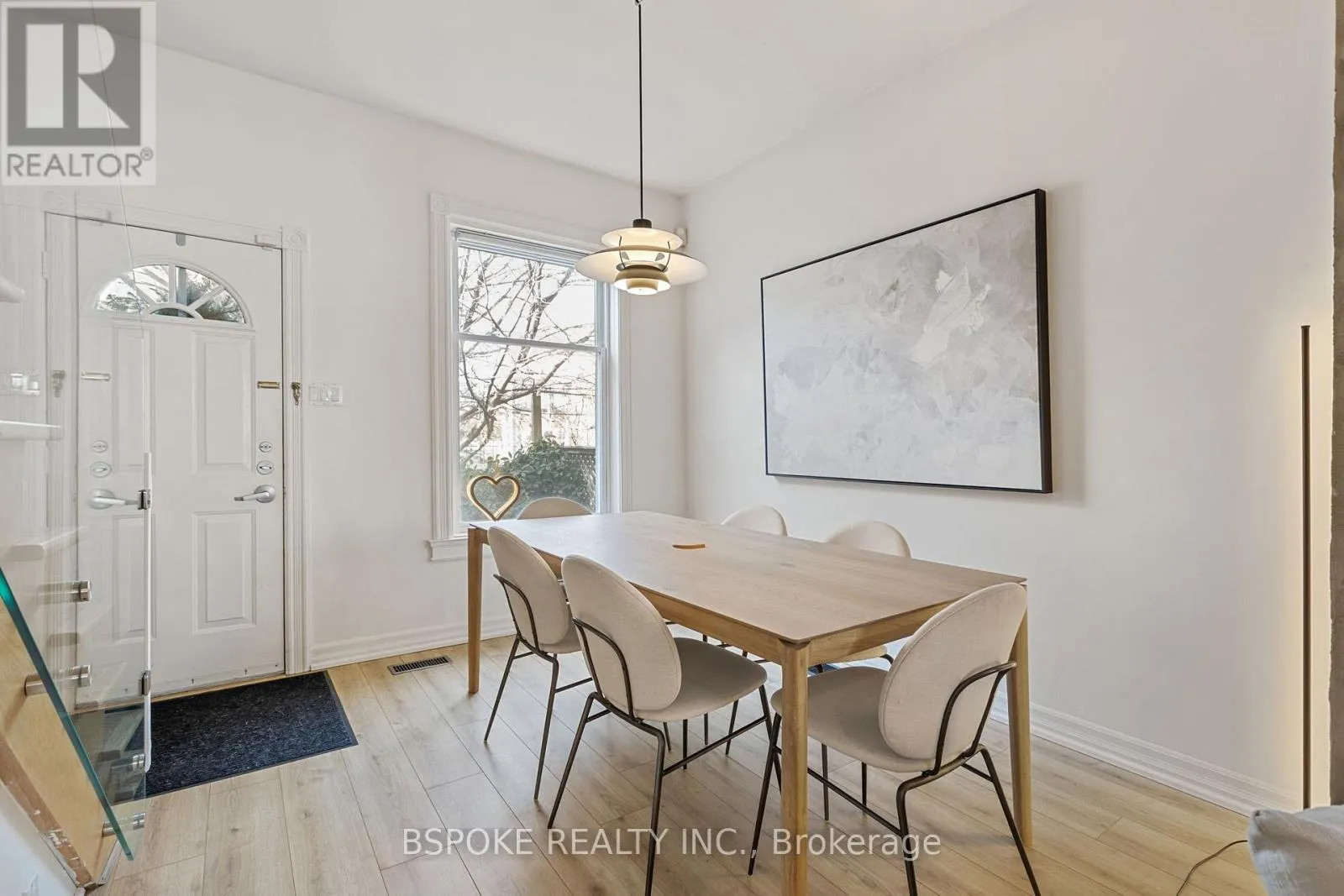 +"PublicRemarks": "Charming end-of-row in South Riverdale with a welcoming setback, perennial garden and a little free library. Inside, over 9 ft high ceilings with Victorian ceiling roses, and an open-but-defined living and dining room create an easy main floor flow, anchored by built-in shelving and a clean- lined glass staircase. The renovated kitchen delivers style and function with two-tone cabinetry, herringbone tile and a layout that actually works for everyday cooking. Upstairs, two proper bedrooms are paired with a larger-than-expected 4-piece bathroom, and the 2024 engineered hardwood ties the level together. Out back, a surprisingly spacious and low-maintenance private deck stretches the living space outdoors and makes hosting or unwinding simple; the deck surface was fully replaced in 2024. The basement offers laundry and plenty of storage with decent ceiling height. Thoughtful updates include a newer hot water tank (2024), dishwasher (2023), washing machine (2022) and towel warmer in the bathroom (2024) that heats the whole room. All of this in a super desirable and walkable east-end pocket close to Riverdale Park, Lady Marmalade, Gerrard's Little Vietnam, Queen East, the Danforth, transit, shops, bars and restaurants - an ideal house for someone who wants character, comfort and a neighbourhood they'll actually use. (id:62650)"