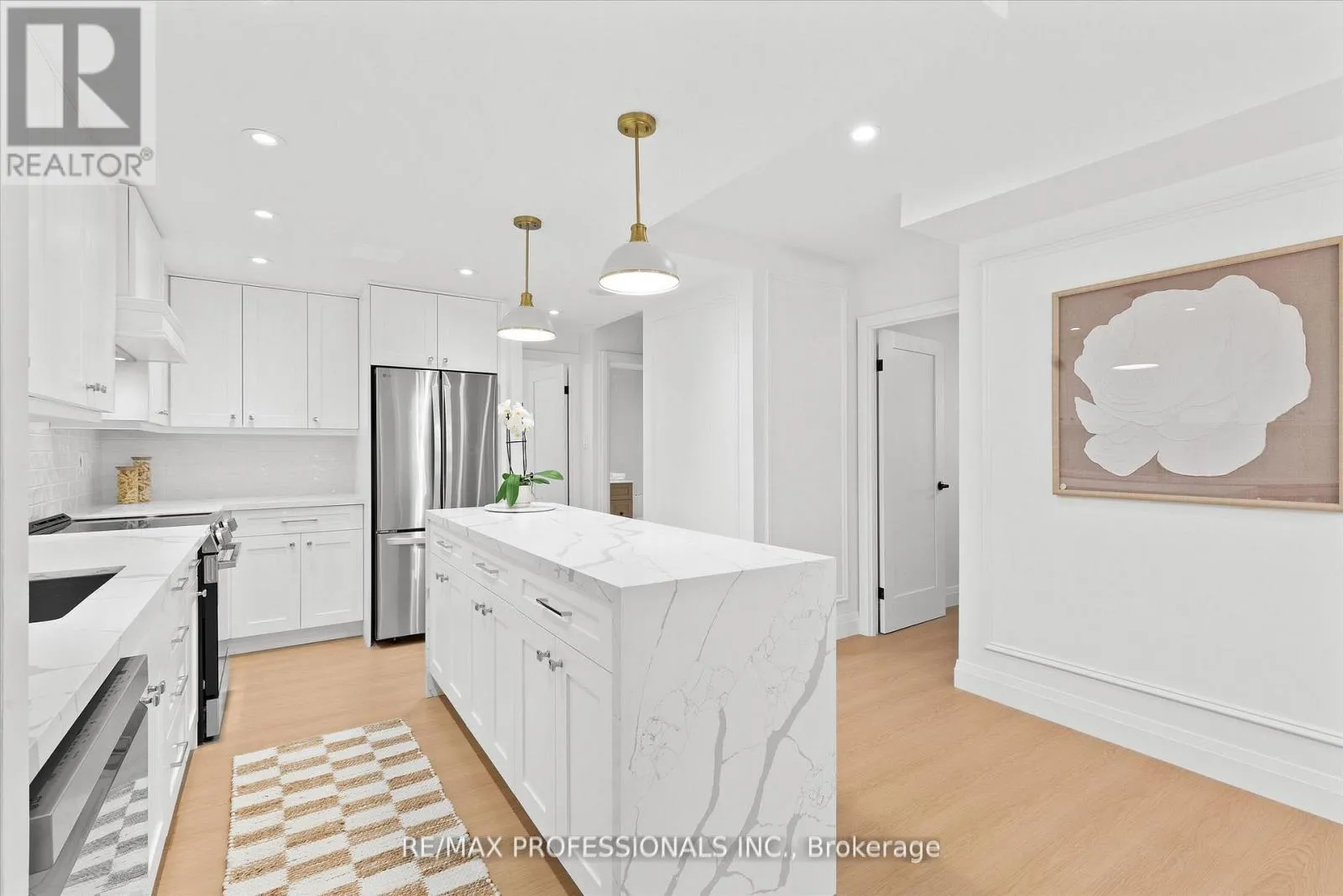 +"PublicRemarks": "Welcome to this beautifully renovated, boutique-like 3-bedroom, 2-bathroom corner unit, offering over 1,100 square feet of modern living space. Flooded with natural light from multiple exposures, the layout feels open and airy the moment you walk in. The home features Canadian-made laminate floors throughout, elegant wainscoting, sleek pot lighting, and custom-built closets that maximize storage. The custom-designed, open-concept kitchen with a waterfall island is a true showstopper, complete with all-new appliances and refined quartz countertops-perfect for cooking, entertaining, and everyday living. Luxury is redefined in both bathrooms, featuring Italian-made tiles and tasteful modern finishes. Every room feels bright, spacious, and inviting. Fully updated from top to bottom, this move-in ready unit truly redefines luxury and comfort. Maintenance fees are all-inclusive, covering hydro, heat, water, air conditioning, Rogers cable, and high-speed unlimited internet. The building offers an impressive array of amenities, including indoor and outdoor pools, sauna, a newly renovated recreation center with gym, ping pong, squash court, golf simulator, party room, outdoor playground, basketball court, and tennis court. Ideally located next to top-rated schools and Centennial Park, with TTC at your doorstep and quick access to Highways 427, 401, and QEW, airport, shopping, golf, and more-just move in and enjoy! (id:62650)"