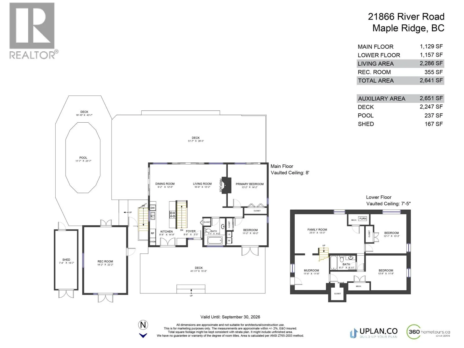 +"PublicRemarks": "Fraser River southern-exposed waterfront in one of Maple Ridge's most exclusive neighborhoods. Bathed in natural light with panoramic river and mountain views from the living, dining, and primary bedroom, this 4-bedroom renovated rancher is a rare find. The open-concept kitchen and living area flow to a fully finished, suiteable basement with family room and separate entrance. Don't miss over 2,000 sq.ft. of deck space, and detached rec room for extra family living. All sitting on a flat 16,000+ sq.ft. lot, this property offers incredible potential to expand or build your dream home. BONUS walking distance to Maple Ridge Hospital, and just 10 minutes to Meadowridge School. Inground pool in place with quotes available for a new liner and equipment. Gated property, by appointment only. Check out the property and drone video attached. (id:62650)"