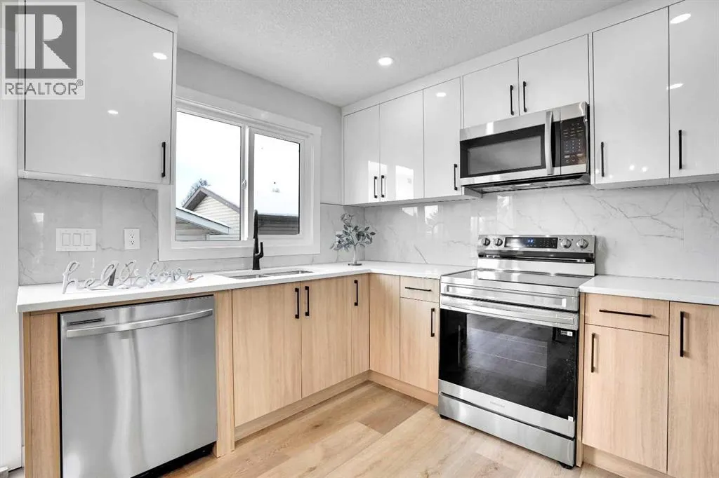 +"PublicRemarks": "Welcome to this beautifully renovated two-storey detached home located in the highly desirable community of Falconridge in NE Calgary. This stunning property offers 4 bedrooms, 2 full + 2 half bathrooms, a double detached garage, brand new appliances, brand new windows, siding, soffit, fascia, gutters, pluming and garage roof. An unbeatable location—just a 2-minute walk to St. John XXIII School and close to all major amenities.As you enter, you’re greeted by a spacious foyer that leads into a bright and inviting living room, highlighted by large windows that fill the space with natural light and a stylish feature wall that elevates the ambiance. The modern kitchen at the rear of the home showcases quartz countertops, stainless steel appliances, and overlooks both the dining area and the living room. A large patio door provides seamless access to the backyard and adds an elegant touch to the dining space. A stacked laundry closet and 2-pc powder room complete the main floor.Upstairs, you will find a generous primary bedroom with ample closet space and a private 2-pc ensuite. Two additional well-sized bedrooms and a beautifully upgraded 4-pc main bathroom complete the level. Plush, upgraded carpet throughout the upper floor adds warmth and comfort.The fully finished basement (illegal suite) with a separate side entrance offers excellent additional living space. It features 1 bedroom, 1 full bathroom, a cozy rec room, and a sleek modern kitchen with stainless steel appliances—perfect for extended family or potential rental use.This home is truly a complete package, offering modern finishes, functional design, and an exceptional location. This gem won’t last long—book your private showing today! (id:62650)"